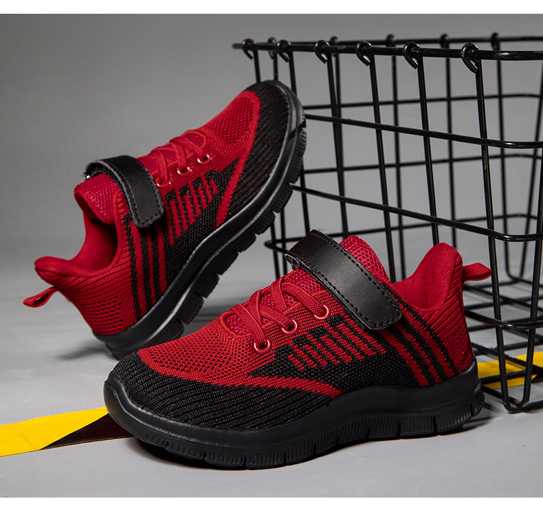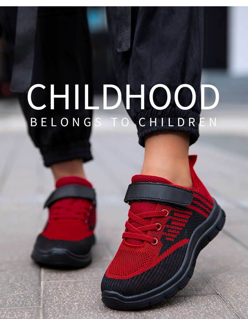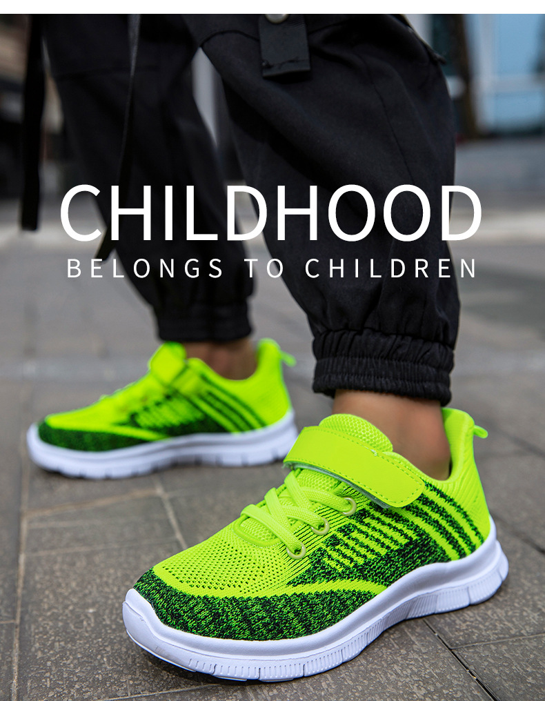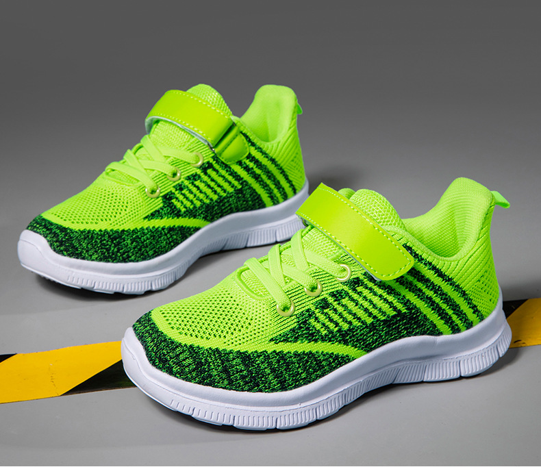 초등 및 중학생을위한 여름 비행 짠 색상 일치하는 어린이 신발 소년과 소녀를위한 아기 통기성 운동화 신발