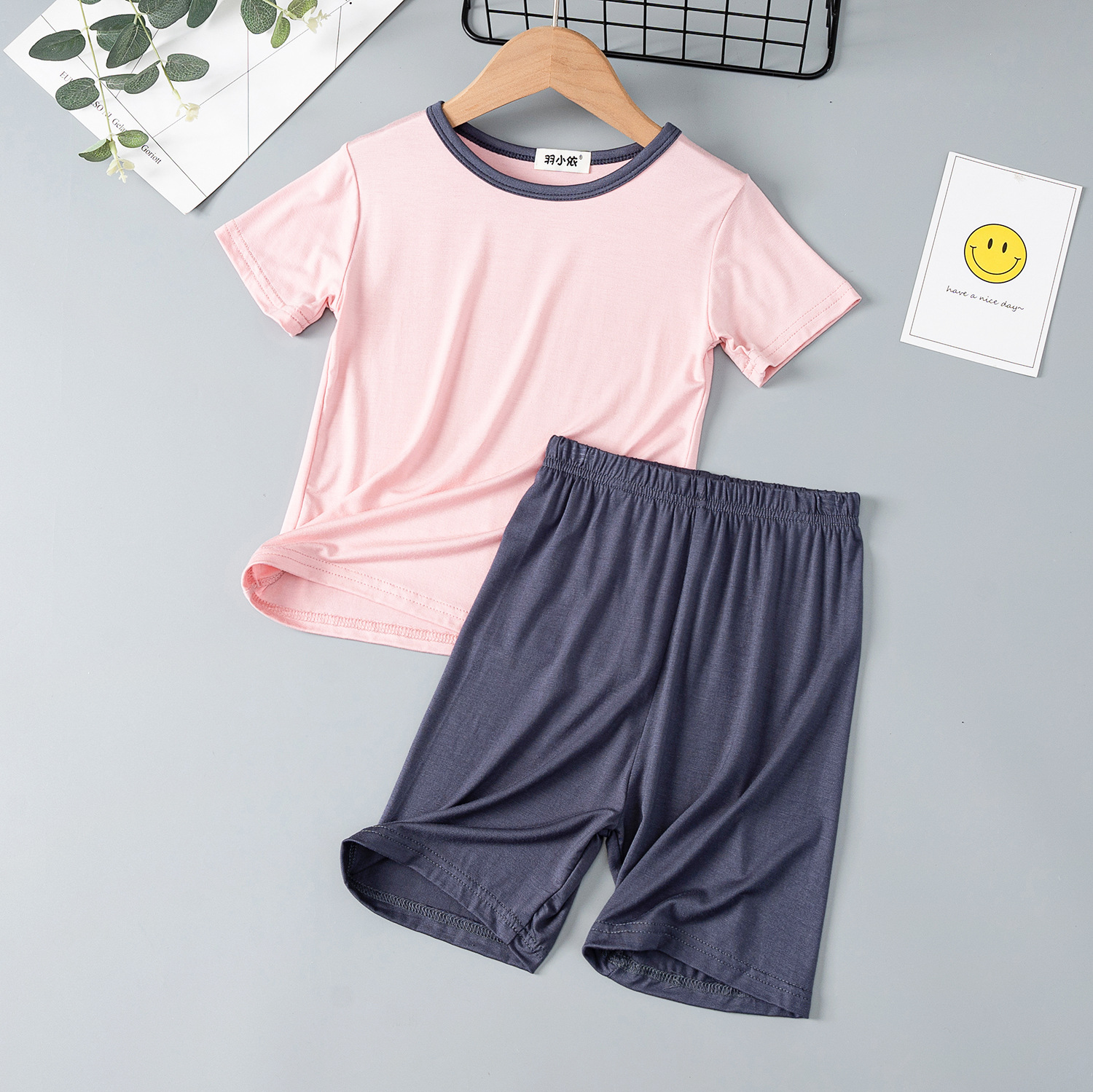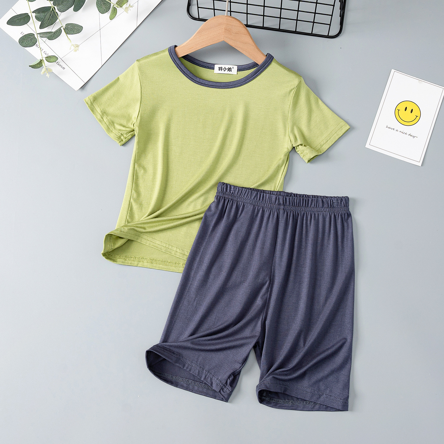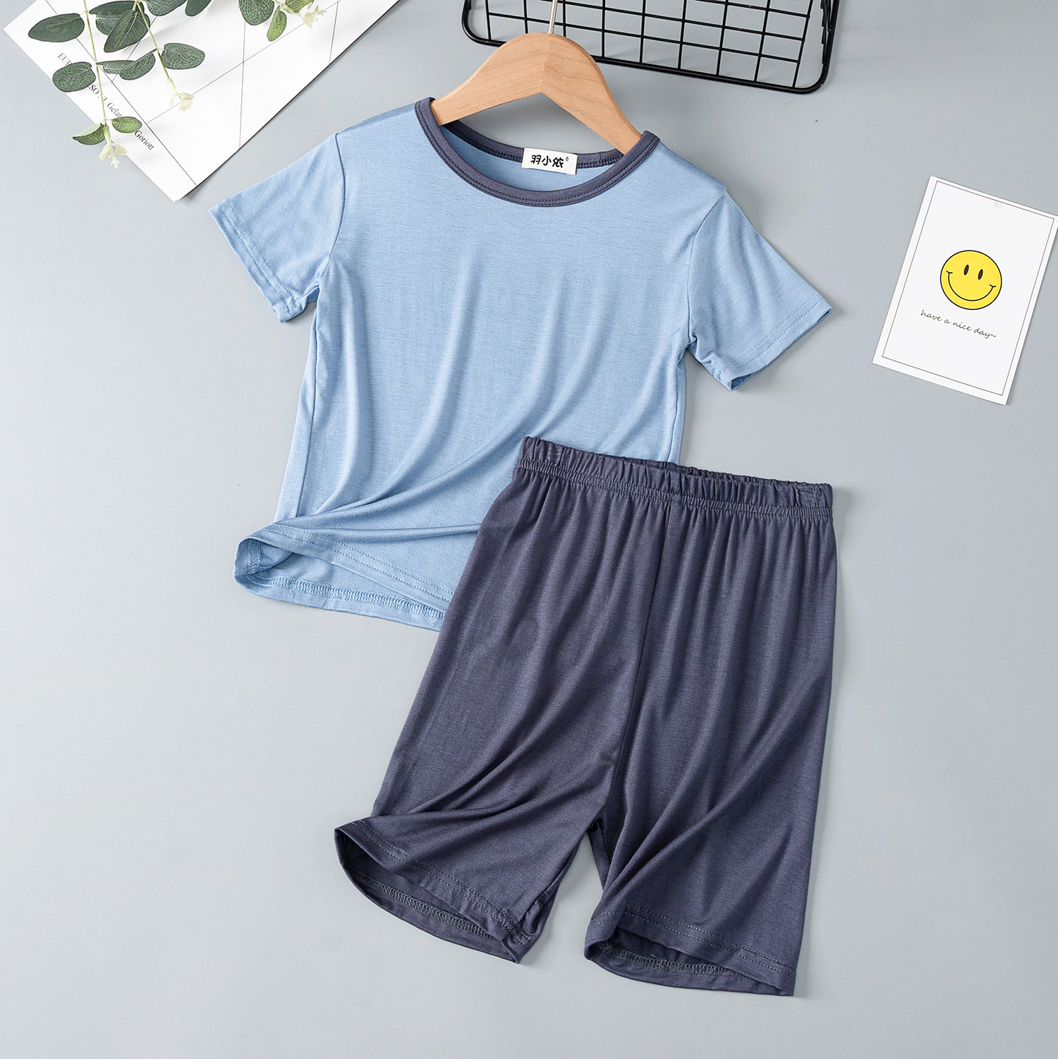 모달 어린이 잠옷 얇은 소년 반팔 가정복 느슨한 소녀 티셔츠 반바지 에어컨 의류 투피스 세트스토어 가기