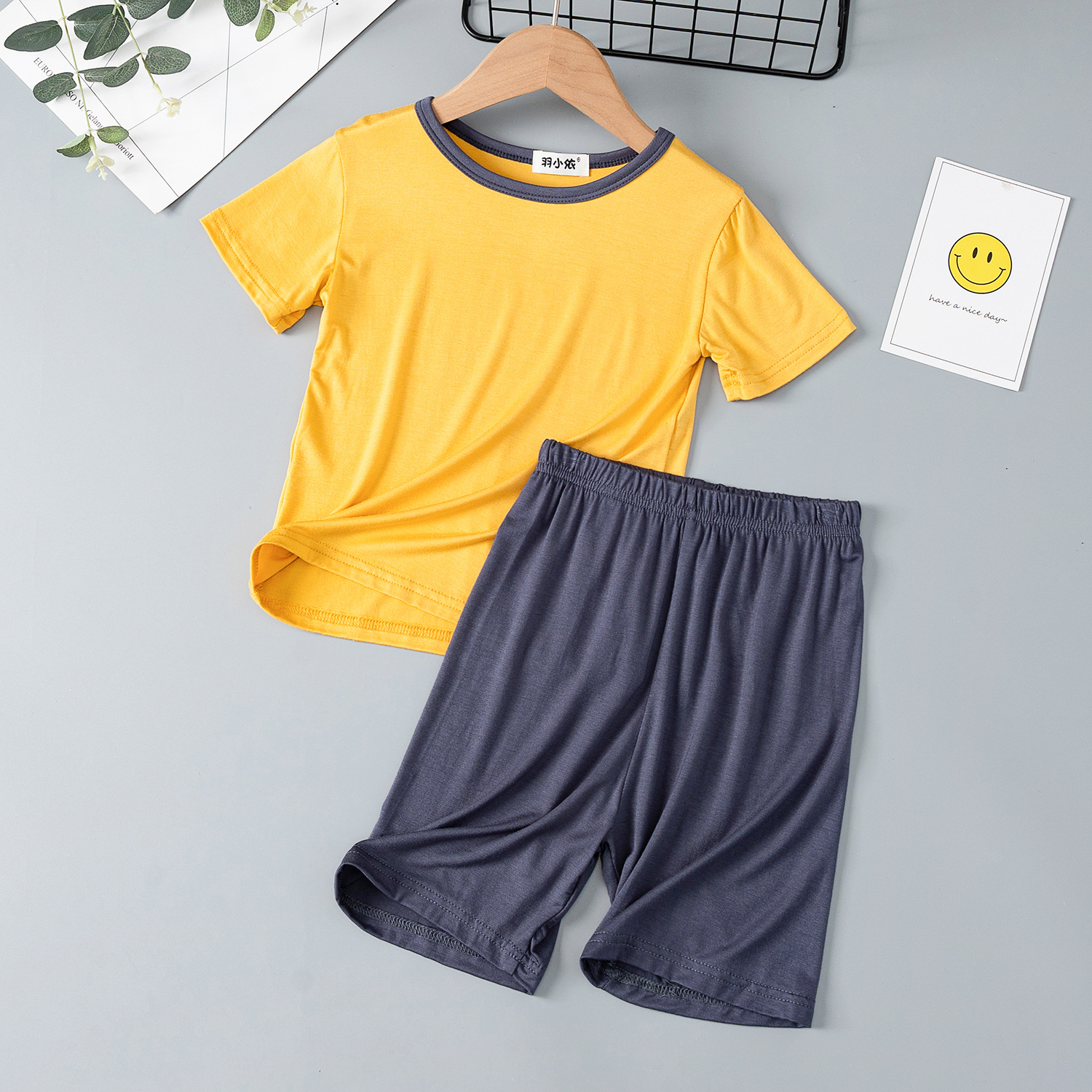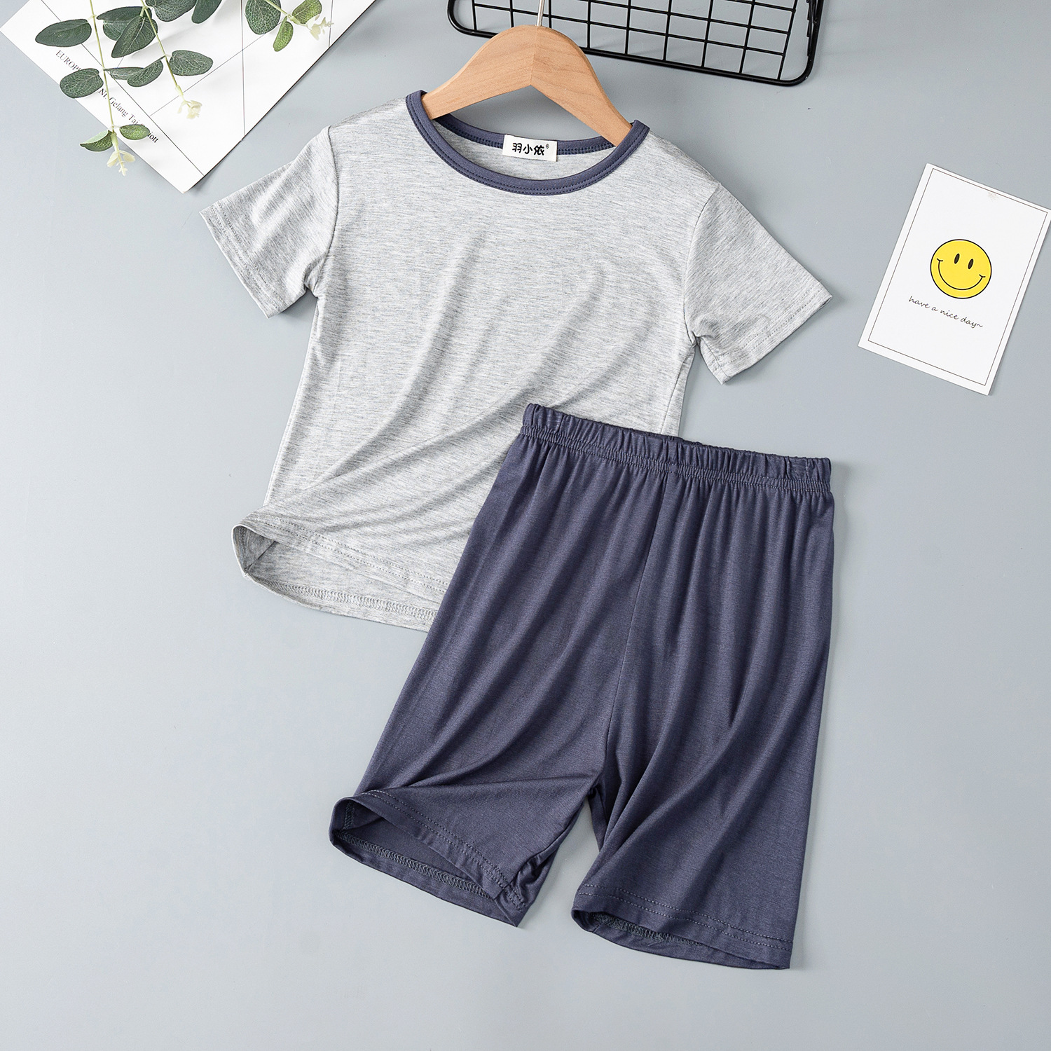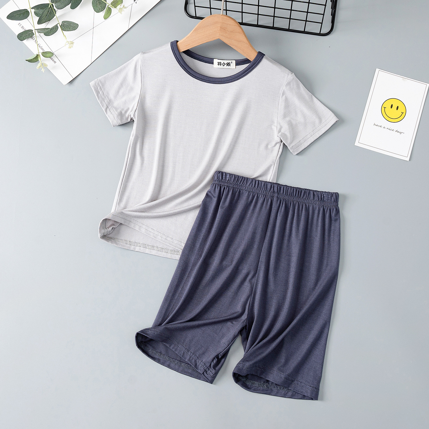 모달 어린이 잠옷 얇은 소년 반팔 가정복 느슨한 소녀 티셔츠 반바지 에어컨 의류 투피스 세트스토어 가기