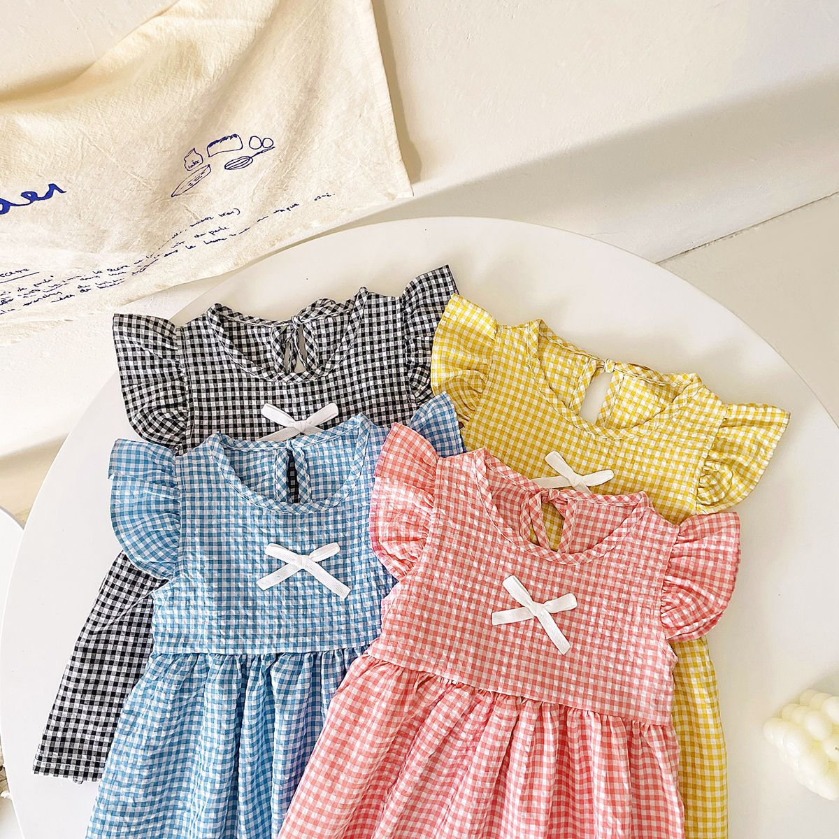 아기 소녀 옷 아동복 한국식 휴가 스타일 아기 공주 해변 원피스 소녀의 여름 격자 무늬 원피스스토어 가기