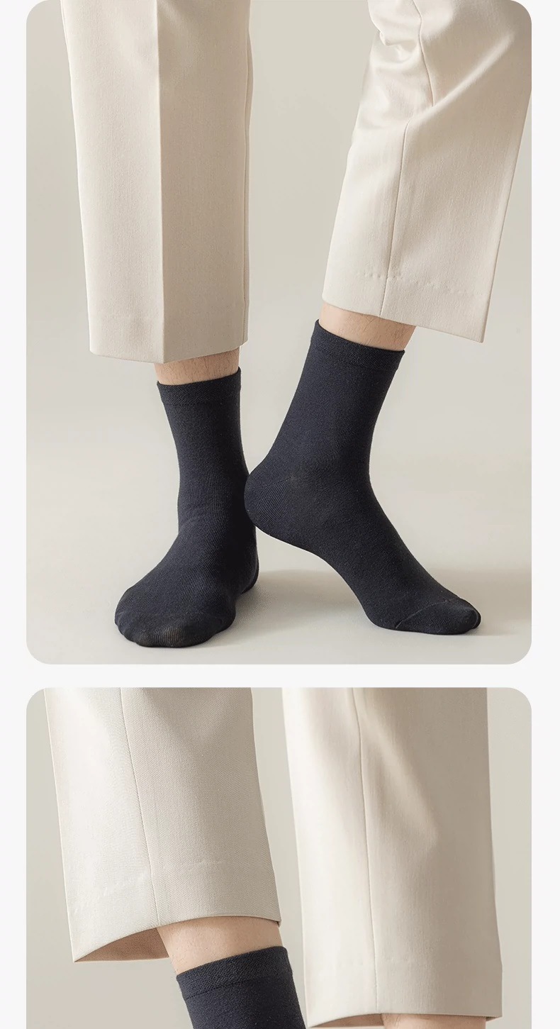 양말 남자의 여름 얇은 중간 배럴 비즈니스 신사 세트 양말 단색 면 양말 블랙 남자의 가죽 신발 스타킹 Zhuji