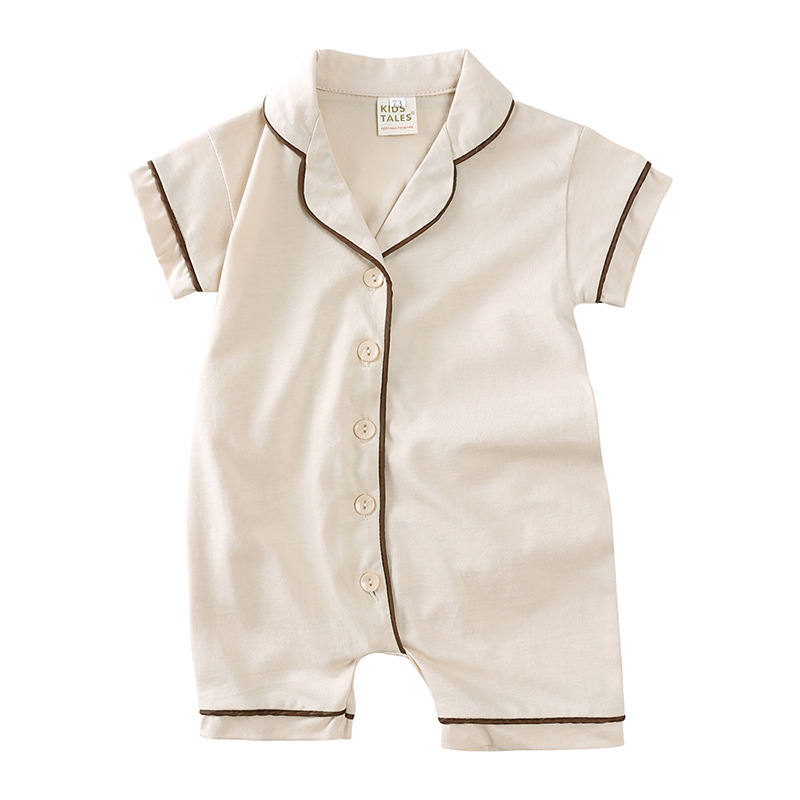 【产品名称】夏季新款婴幼儿连体睡衣宝宝纯色空调翻领休闲短爬薄款家居服夏装