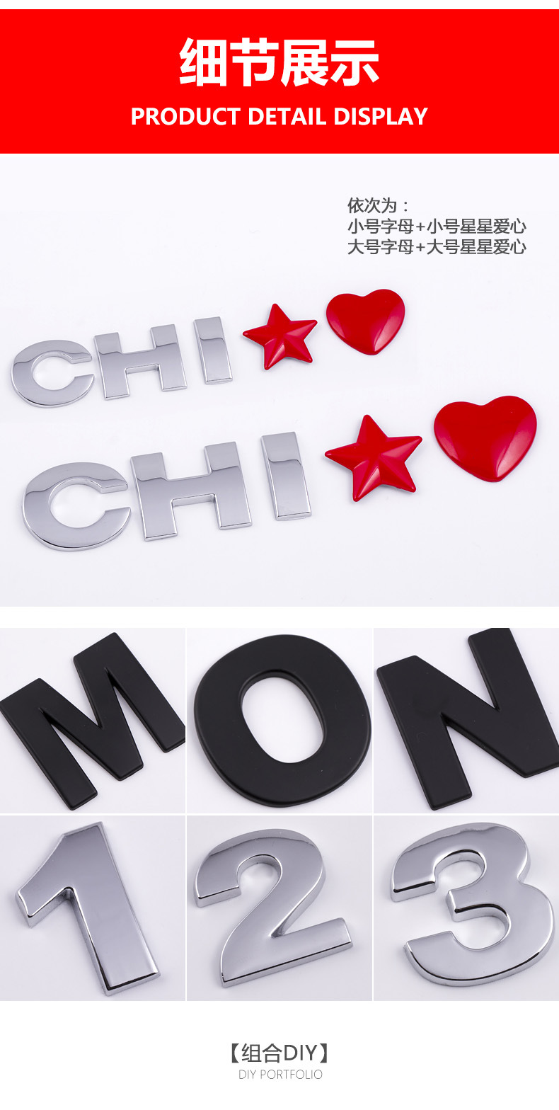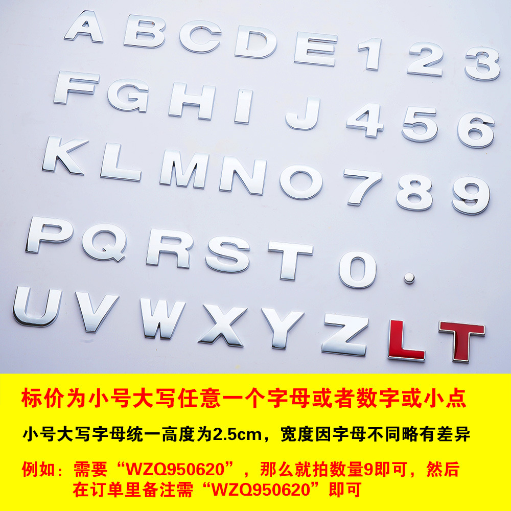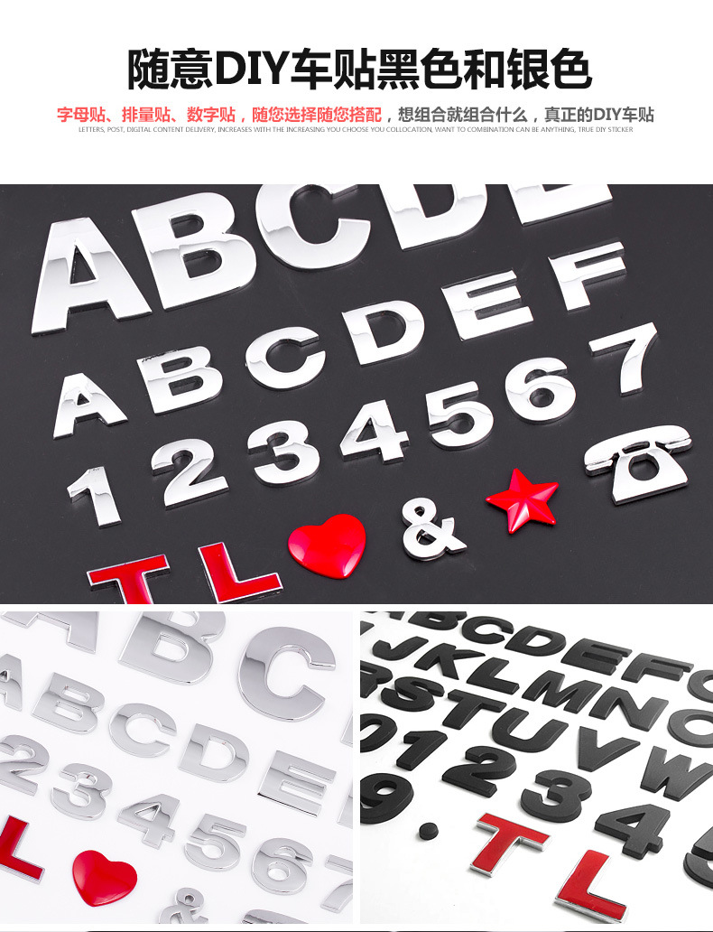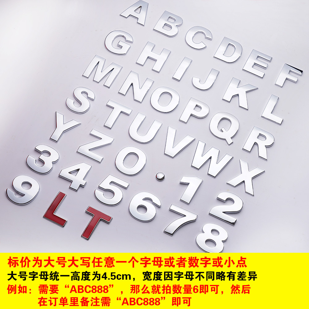 금속 자동차에 적합 영어 문자 소문자 자동차 스티커 개인화 된 수정 디지털 번호 사랑 창조적 인 변위