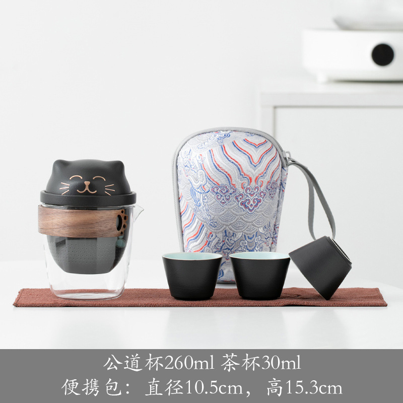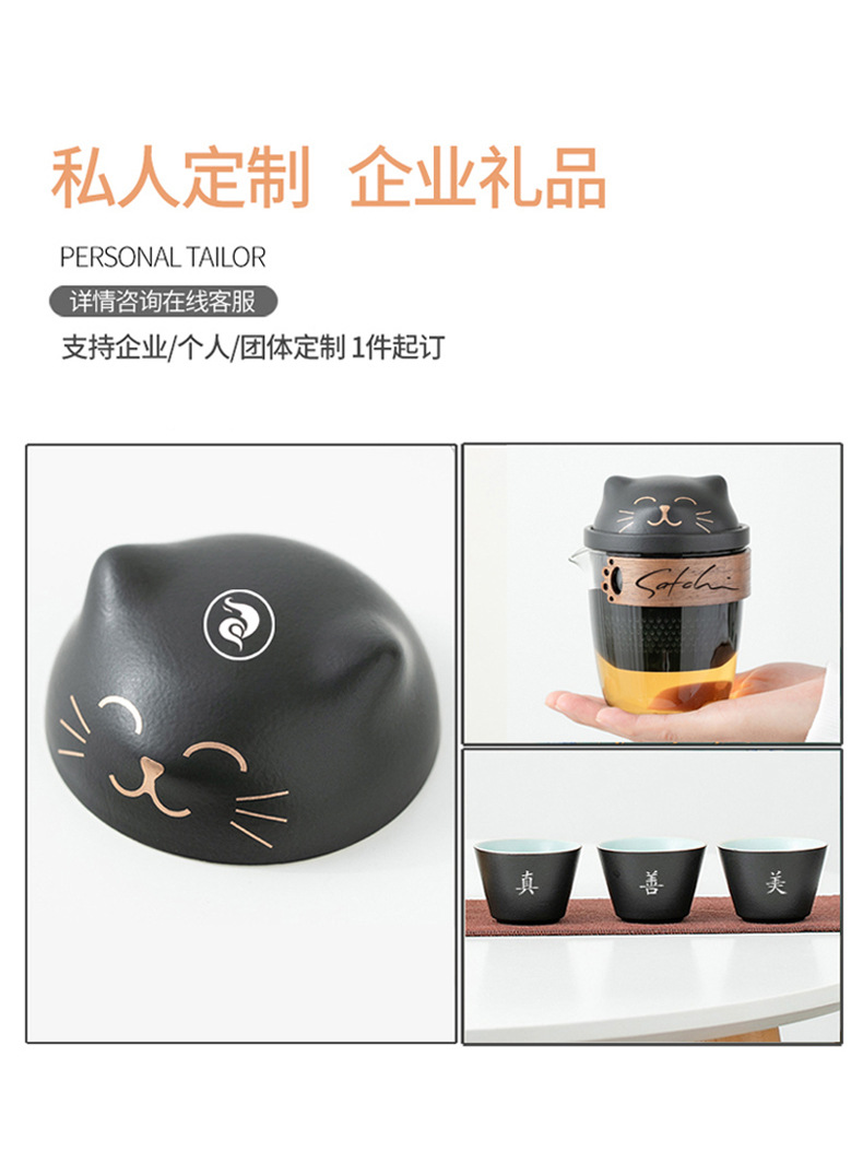 • 행복한 고양이 3 컵 + 차 냄비-우아한 블랙
