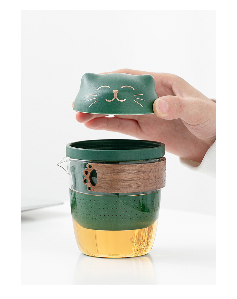 • 행복한 고양이 3 컵 + 차 냄비-녹색