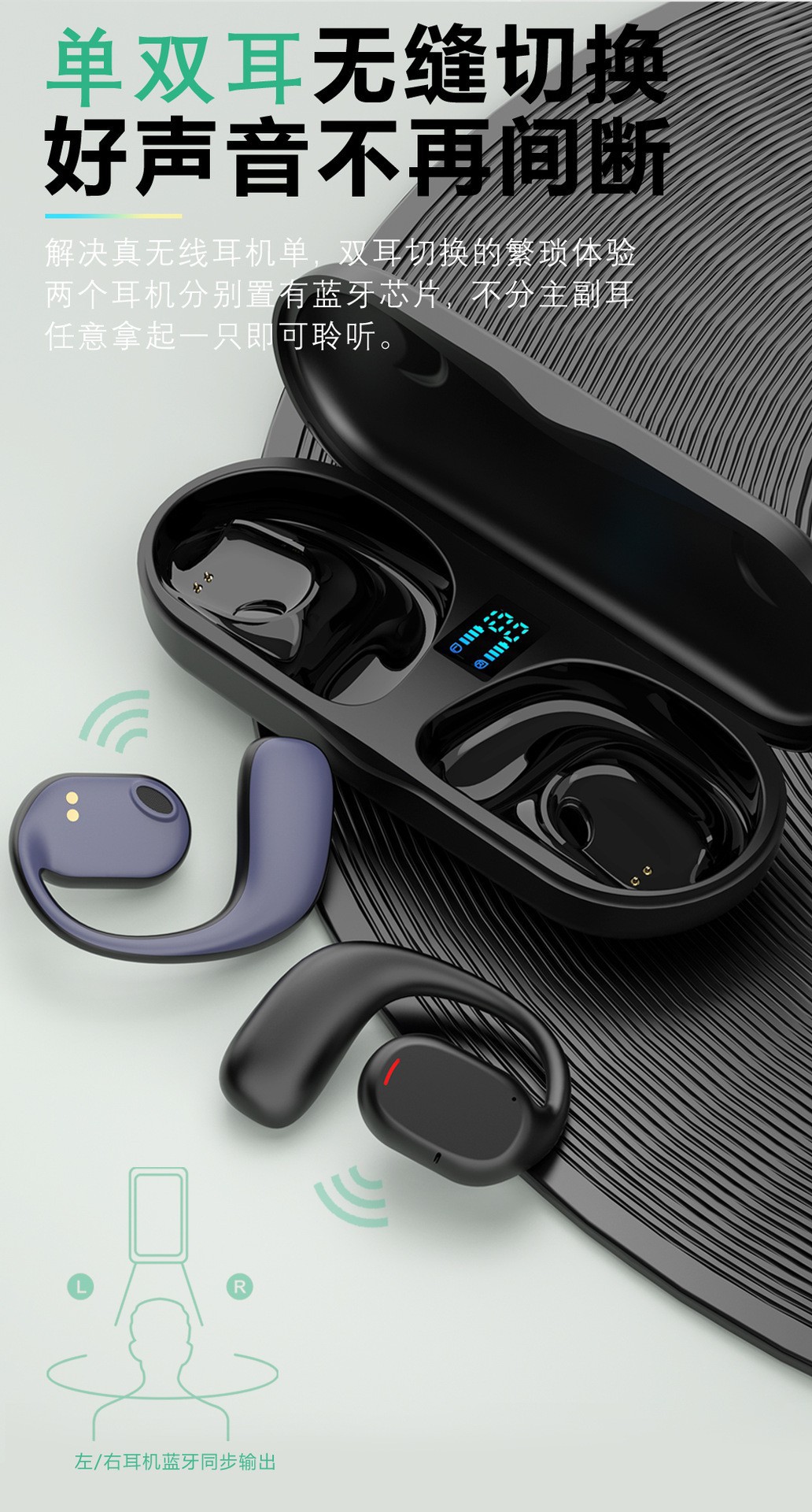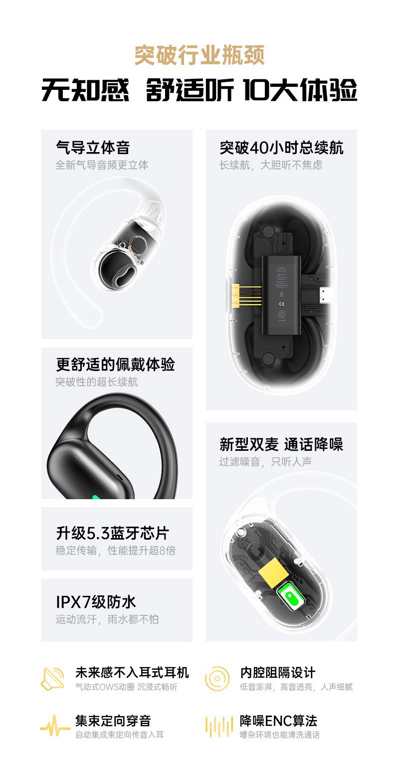 Huaqiang North 오픈 블루투스 헤드셋 귀 교수형 뼈 전도 무선 스포츠 헤드셋 소음 감소 공장 매장