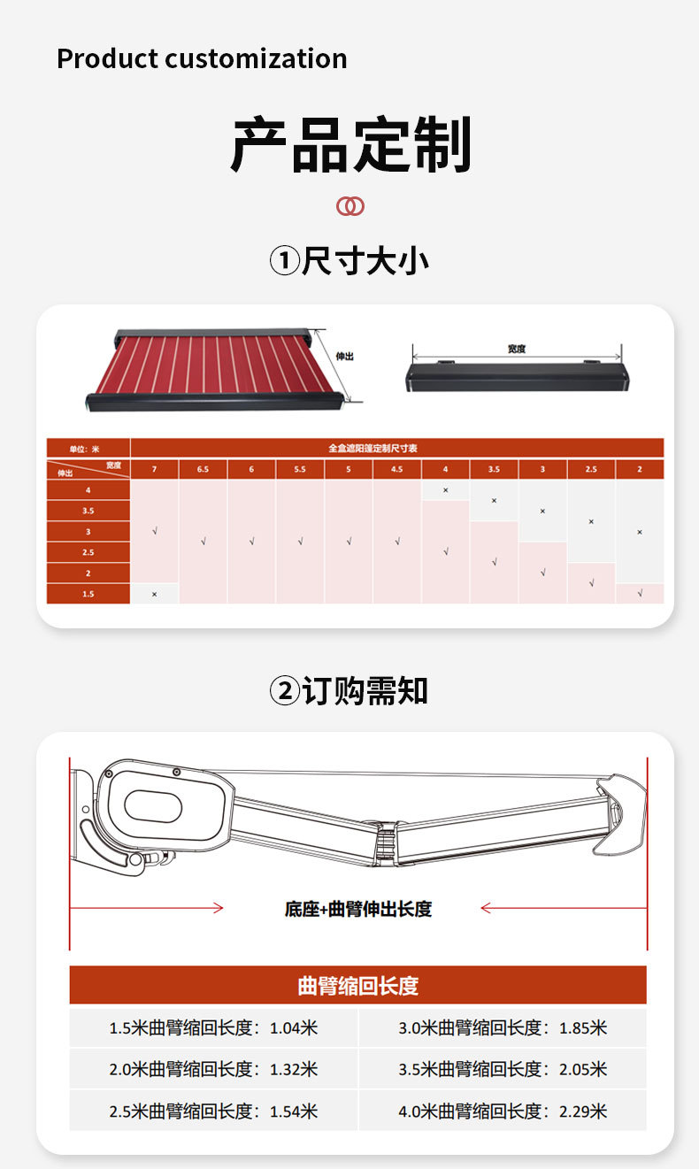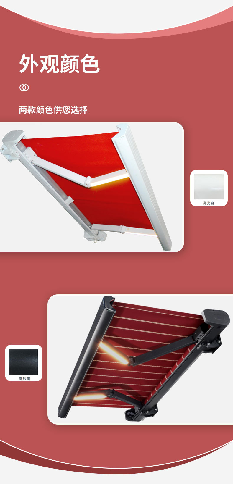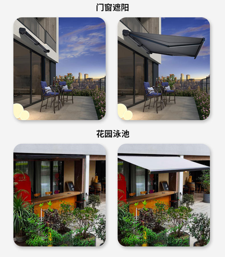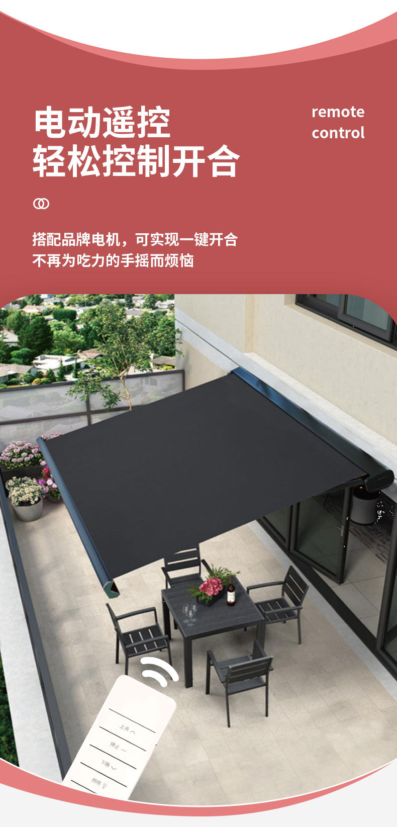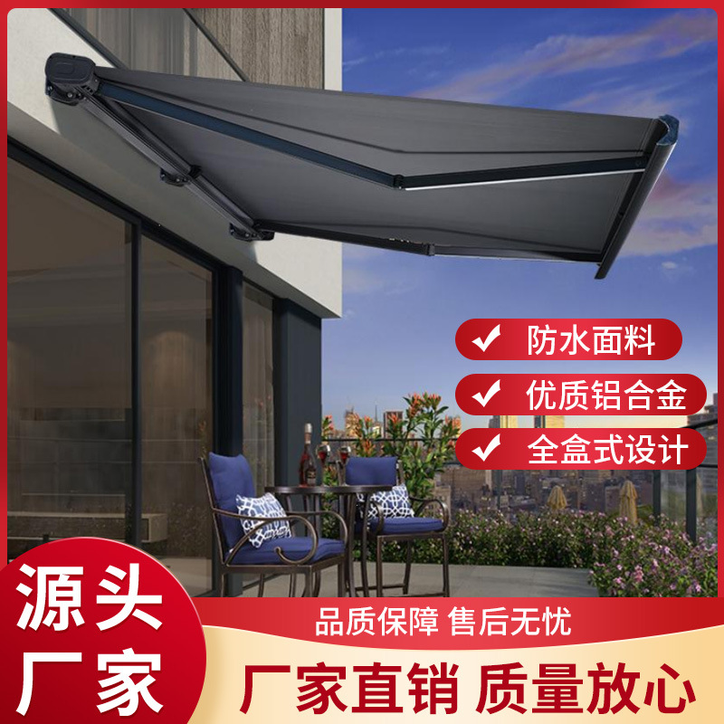 전체 상자 텔레스코픽 캐노피 전기 천막 가벼운 야외 발코니가있는 지능형 원격 제어 홈 도어 헤드 처마 방수 천막