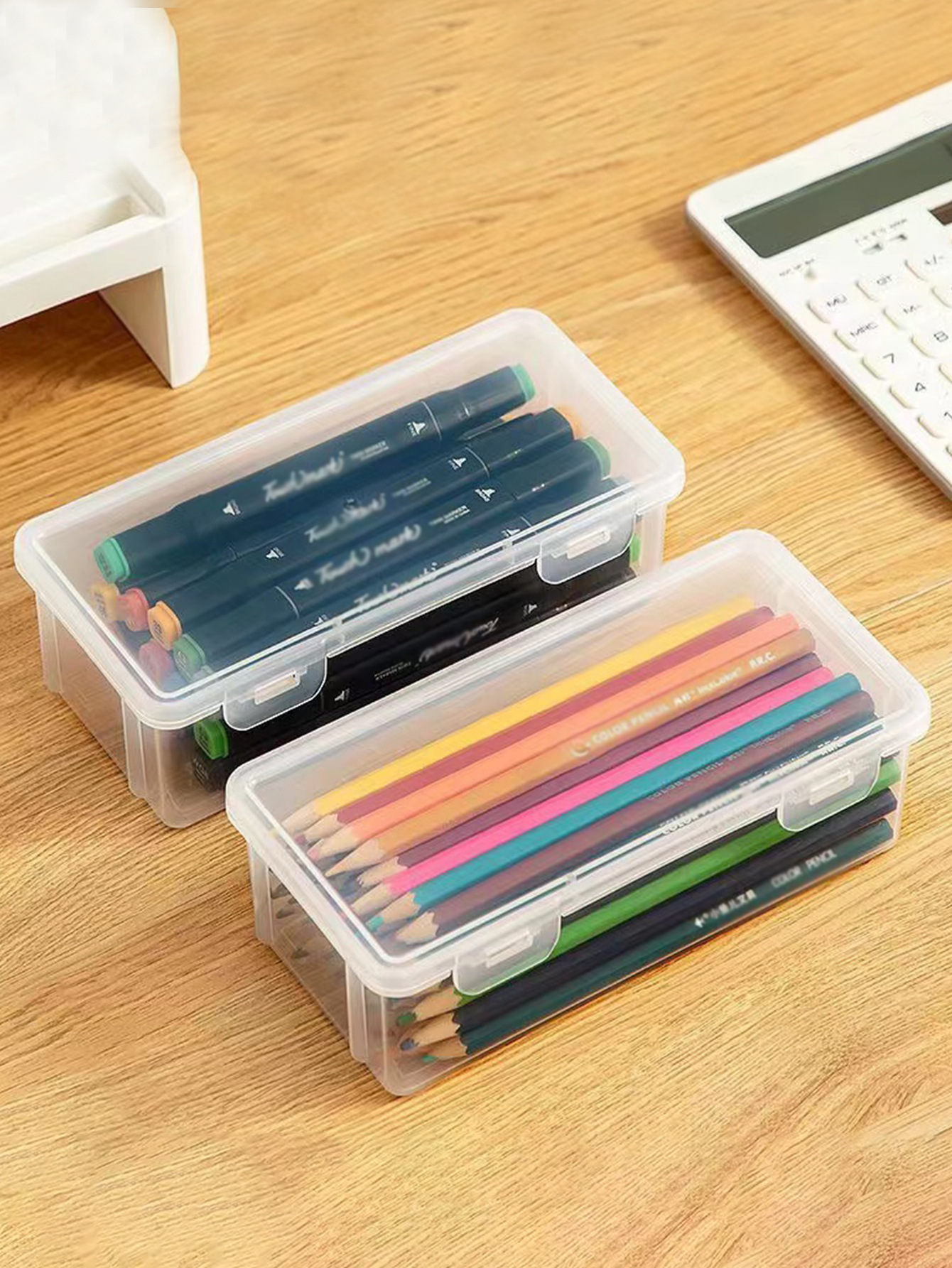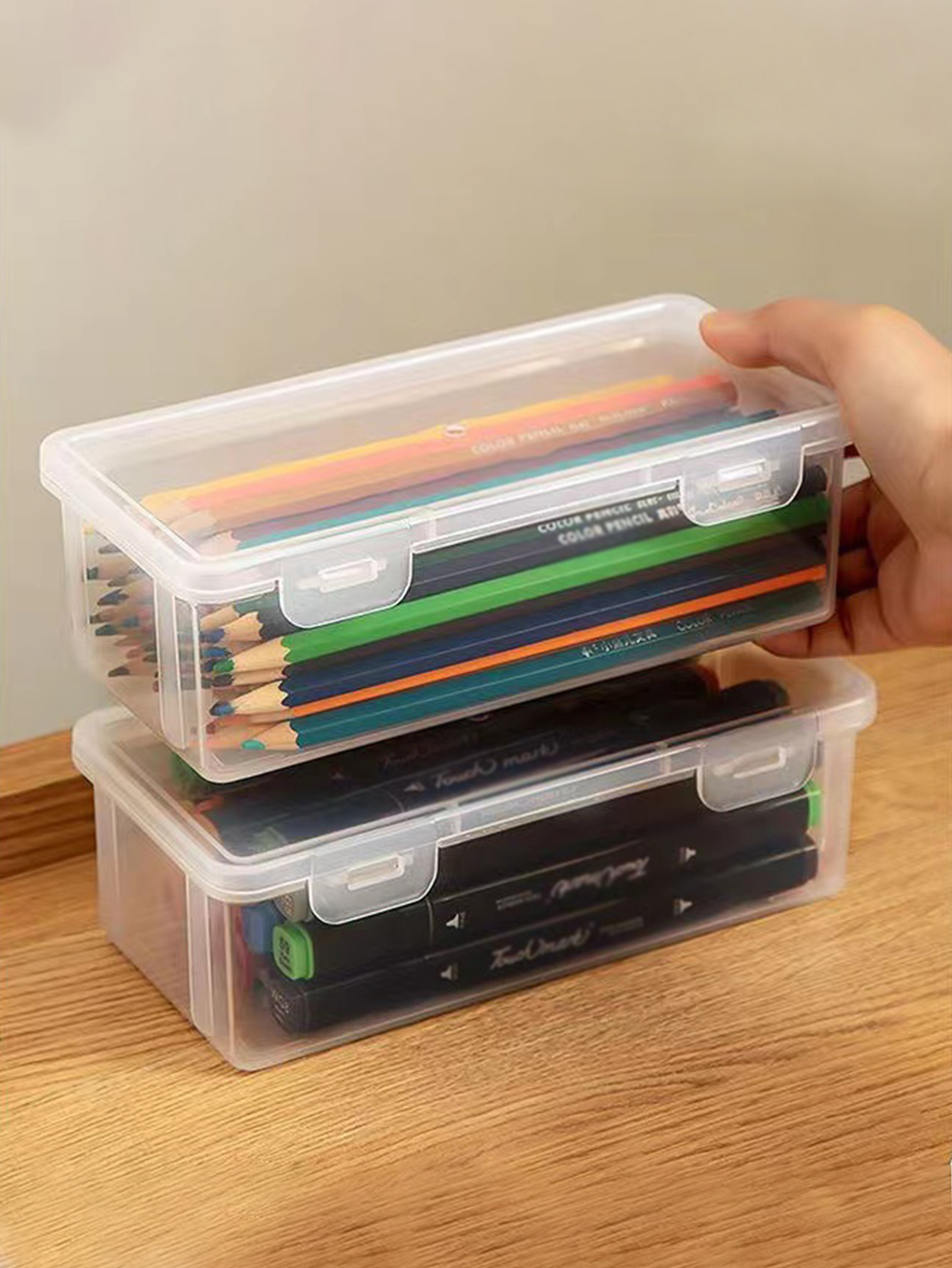 연필 상자 투명 단순 쌓을 수있는 대용량 학생 문구 상자 다기능 스케치 아트 브러시 보관 상자