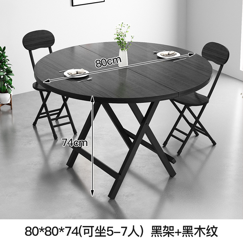 • 블랙 프레임 블랙 우드 그레인 80*80*74 원형 테이블 [5-7 명에 적합]]
