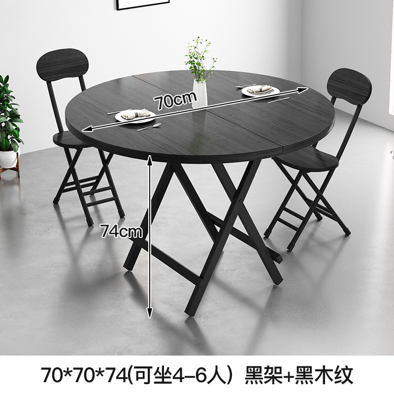 • 블랙 프레임 블랙 우드 그레인 70*70*74 원형 테이블 [2-4 명에 적합]]