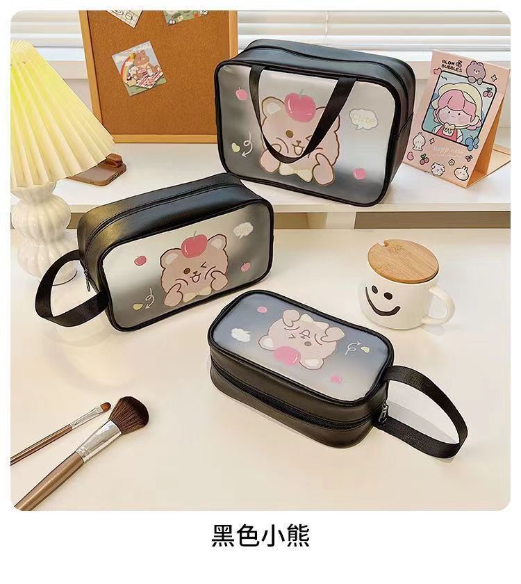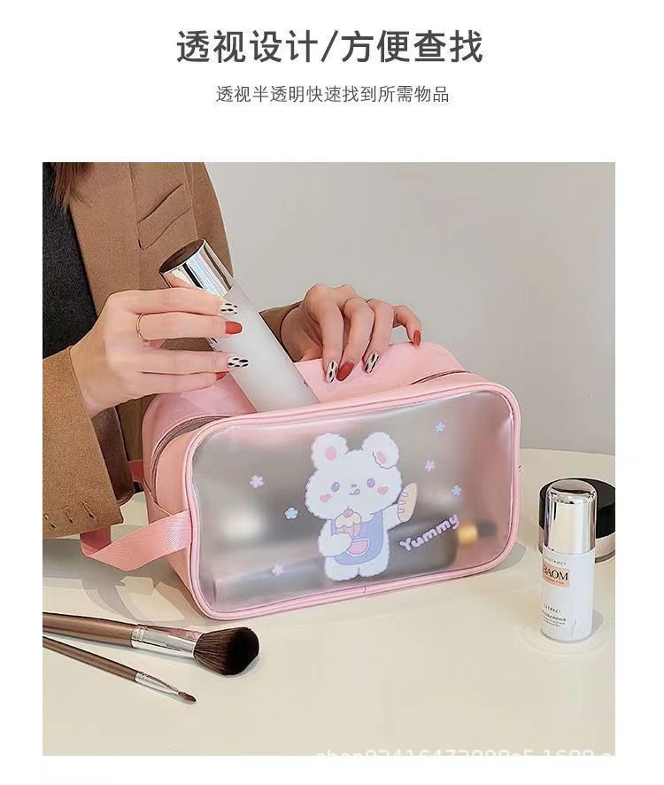 2025년 신형 고급스러운 화장품 가방 PVC 방수 애니메이션 만화 수납 가방 여성용 휴대용 핸드백