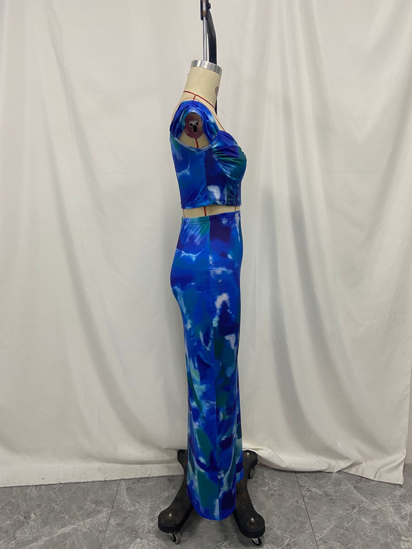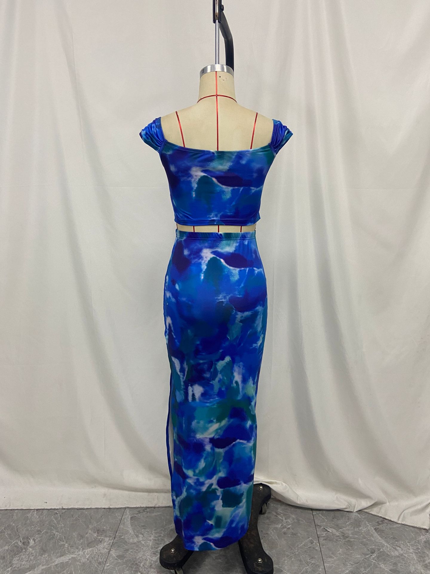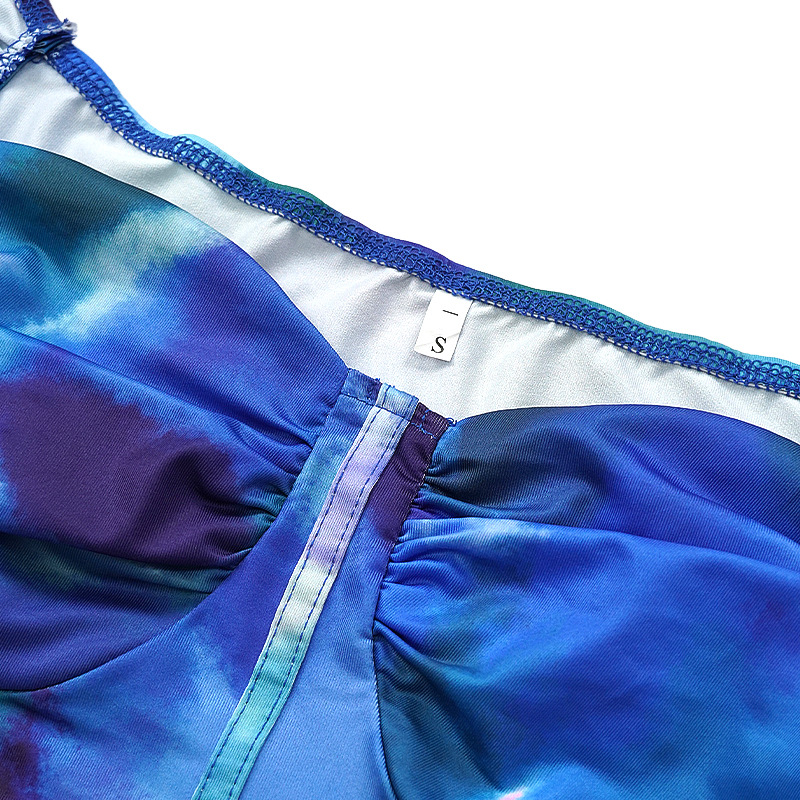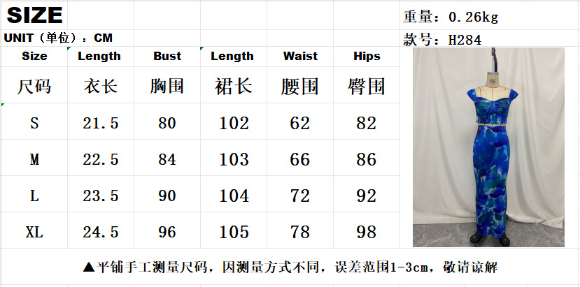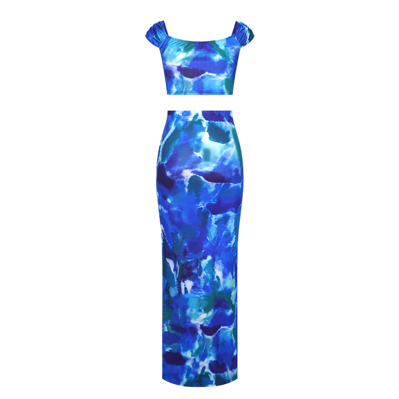 유럽과 미국 스타일의 여성 의류 2023 여름 새로운 인쇄 배꼽 스트랩 상단 슬림 엉덩이 원피스 세트 도매스토어 가기