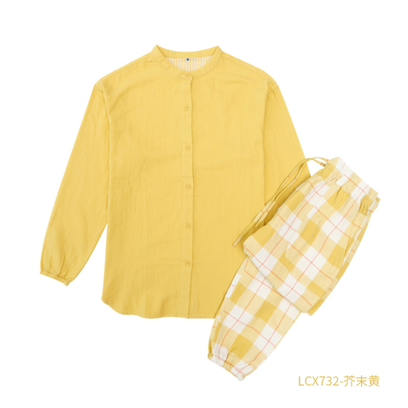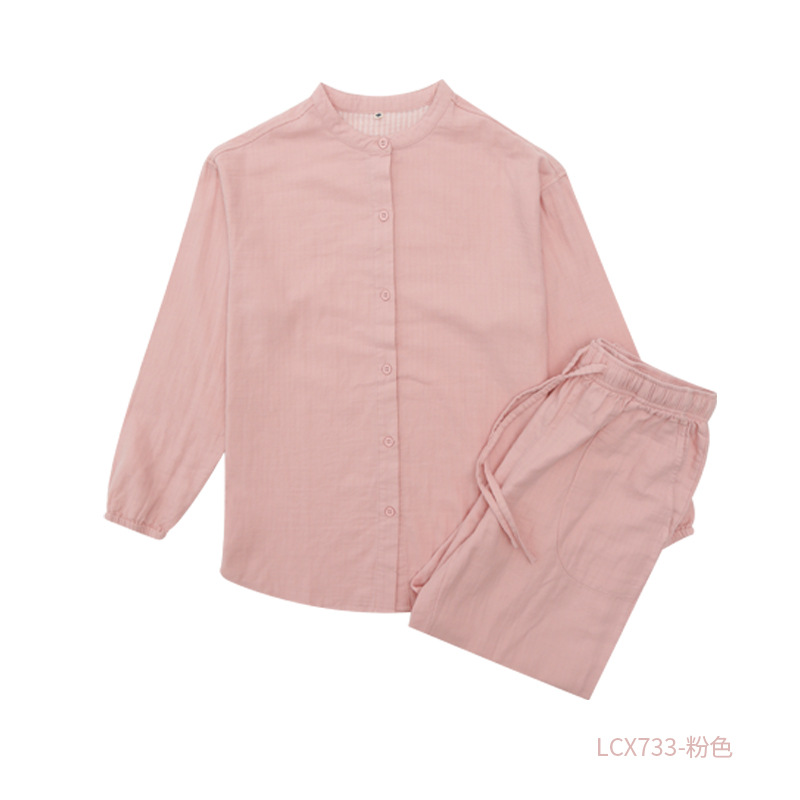 여성을위한 중국 스타일 잠옷 순수 면화 거즈 더블 레이어 거즈 가정 의류 남성 면화 잠옷 커플 긴팔 대형 봄, 가을 세트스토어 가기