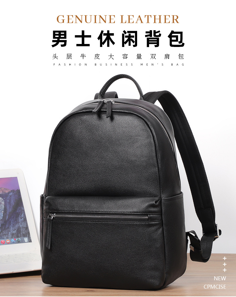 남성용 백팩 정품 가죽 백팩 심플 캐주얼 남성 가방 탑 레이어 소가죽 여행 가방 15.6 인치 컴퓨터 가방 책가방스토어 가기