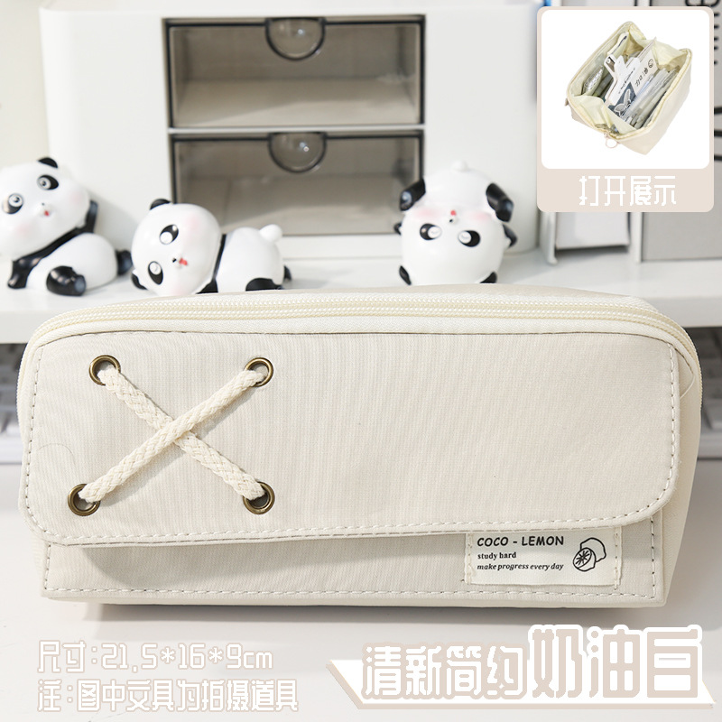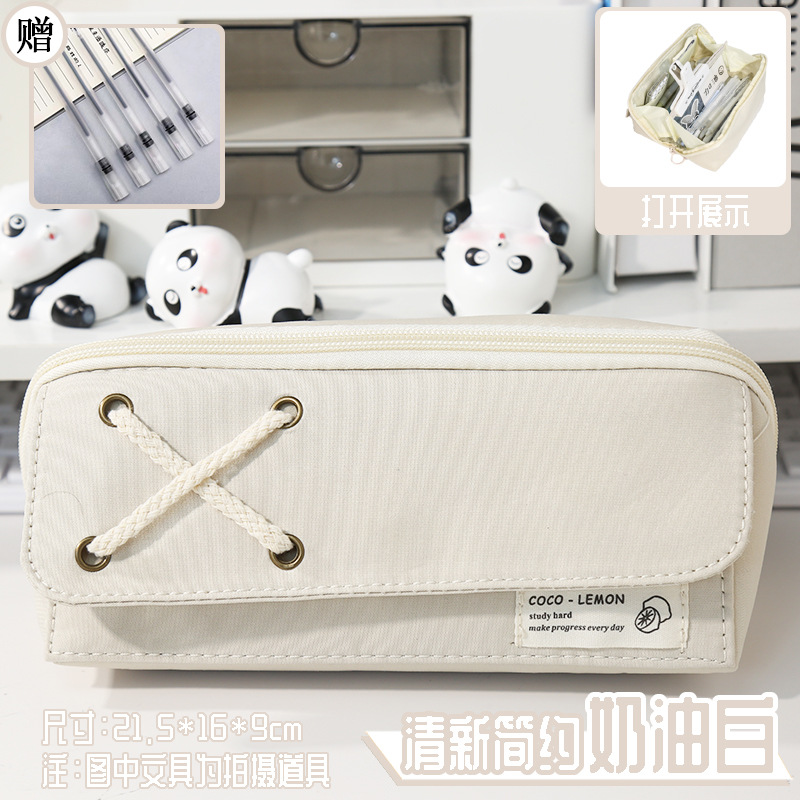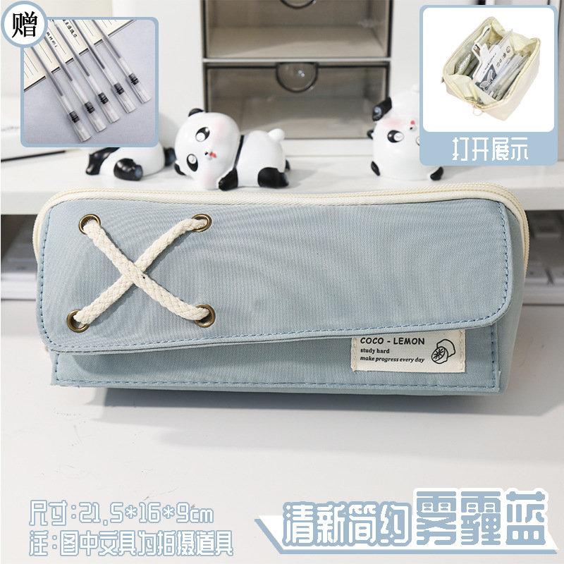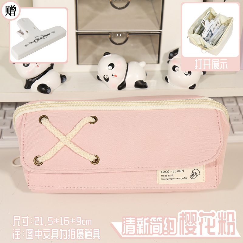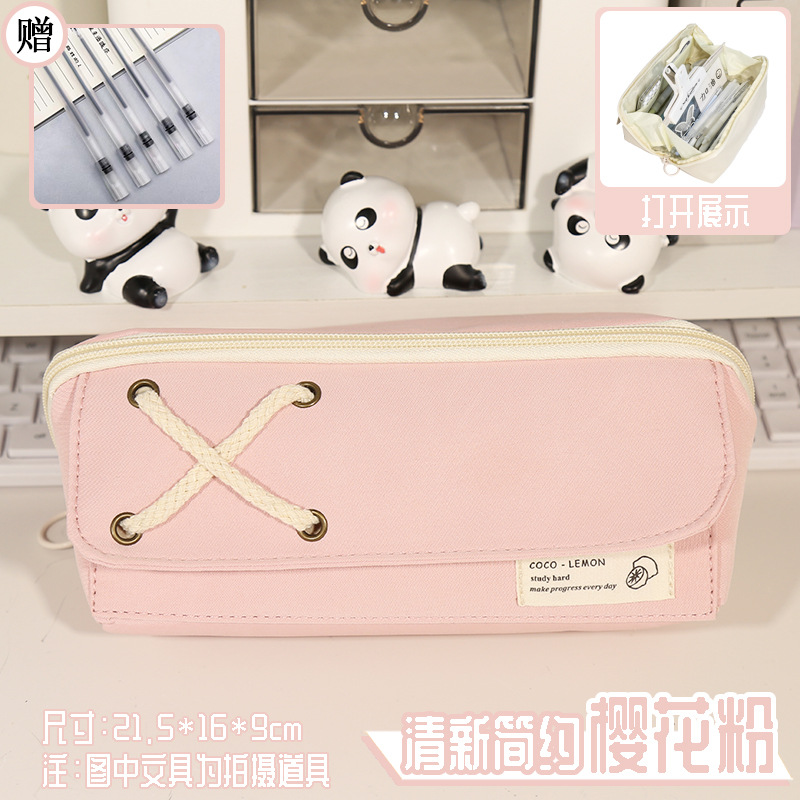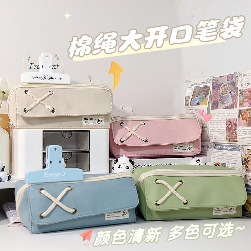 대마 로프 프리즘 다층 대형 오프닝 필통 스타일 일본식 고가 대용량 다기능 필통 단순