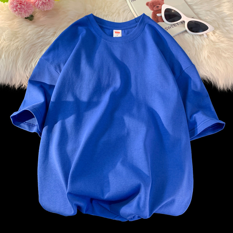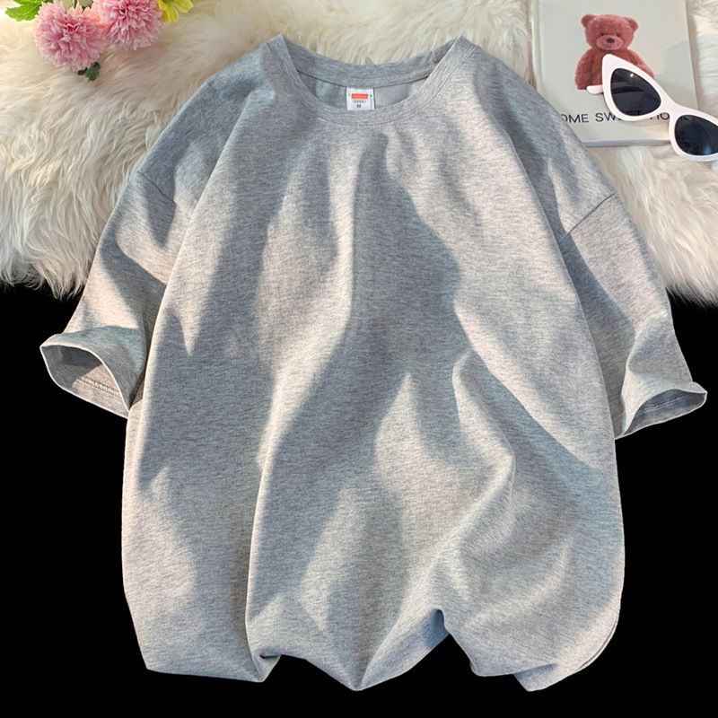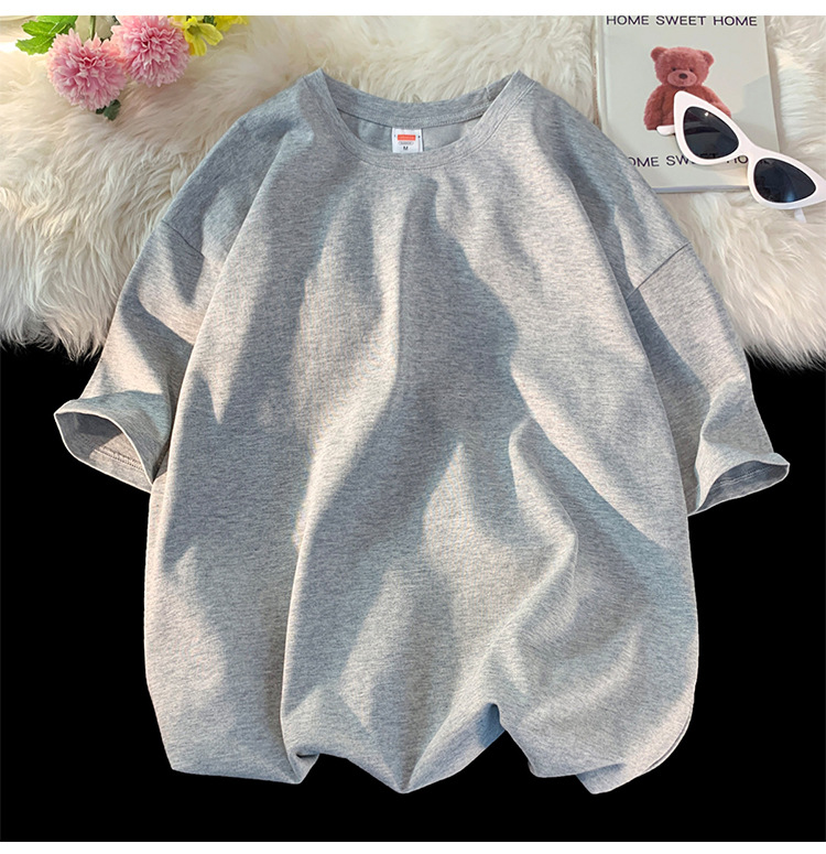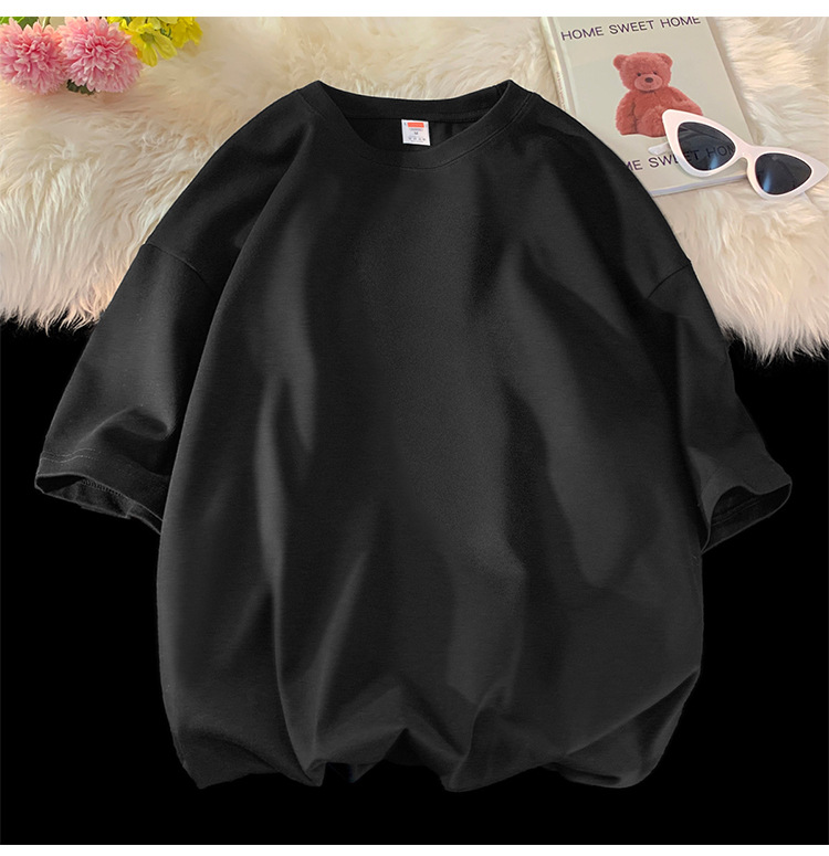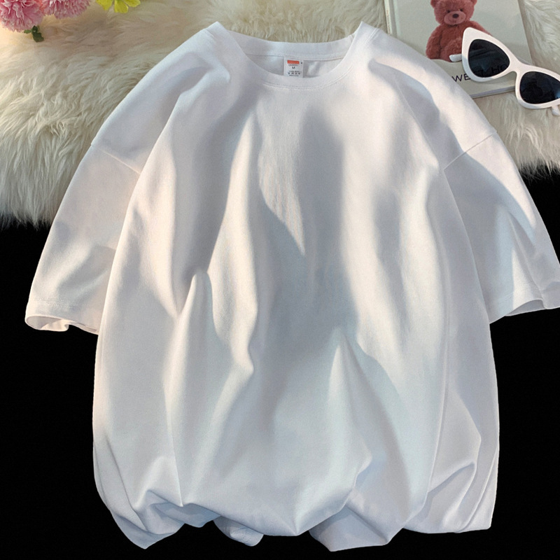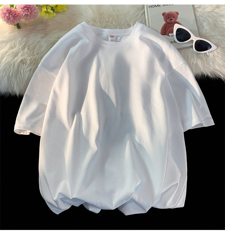 무거운 무게 티셔츠 플러스 사이즈 흰색 순면 짧은 소매 남자와 여자의 순수 블랙 느슨한 단색 라운드 목 반 소매 단색 남성용 착용
