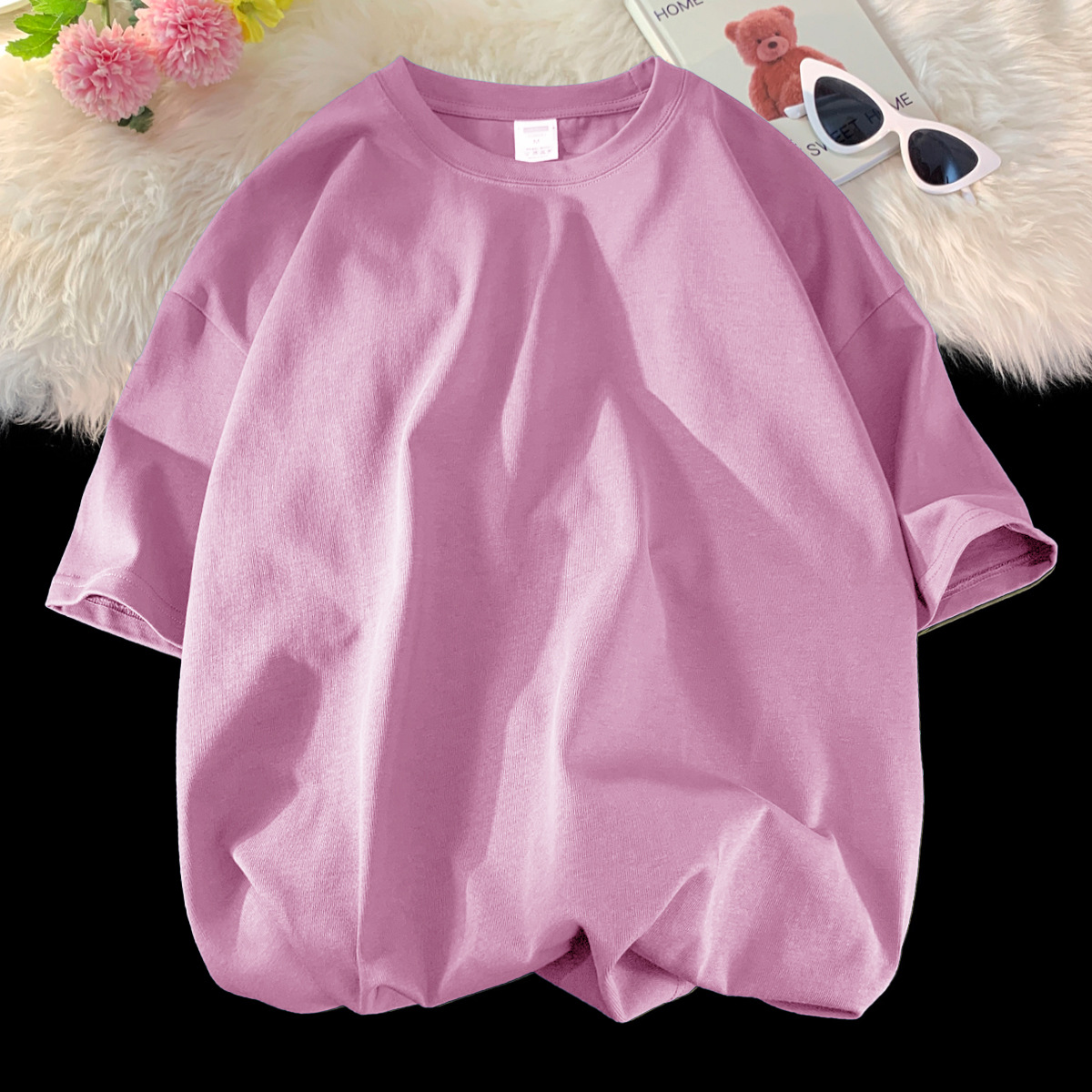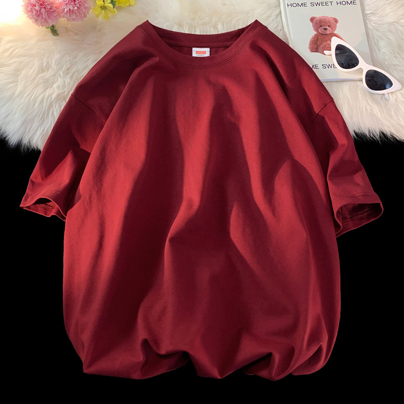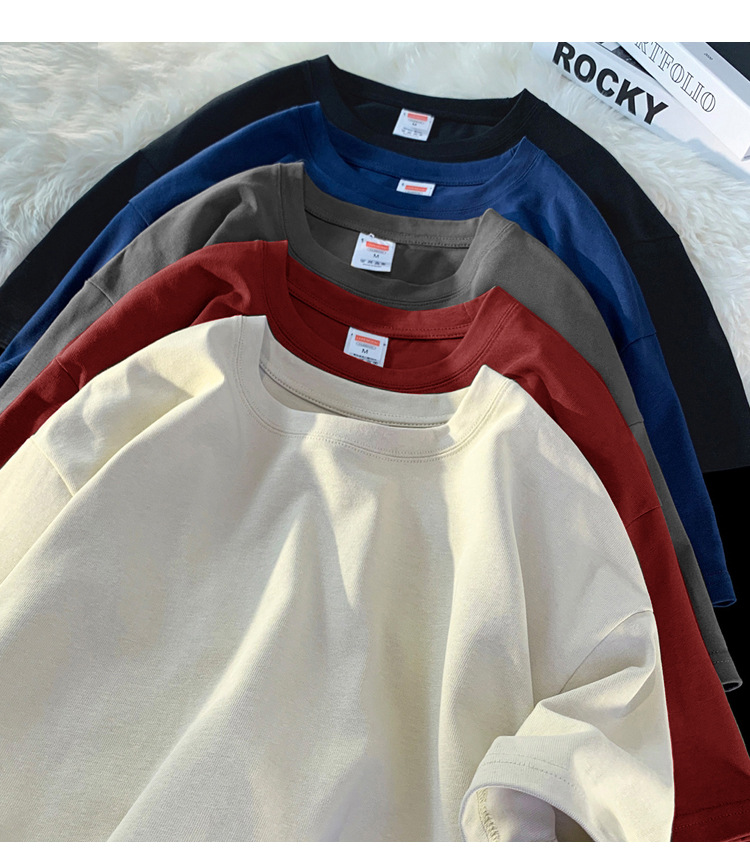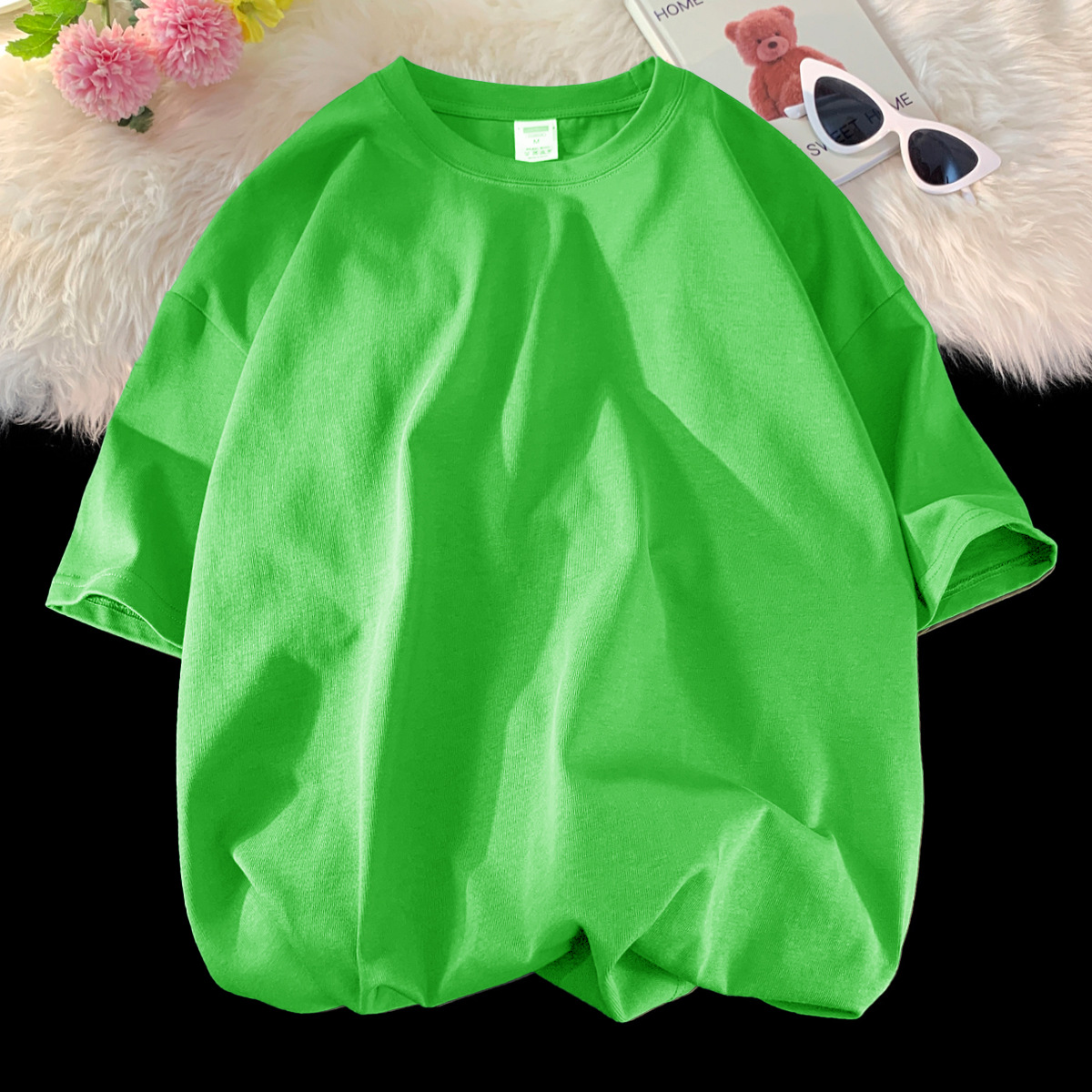 무거운 무게 티셔츠 플러스 사이즈 흰색 순면 짧은 소매 남자와 여자의 순수 블랙 느슨한 단색 라운드 목 반 소매 단색 남성용 착용