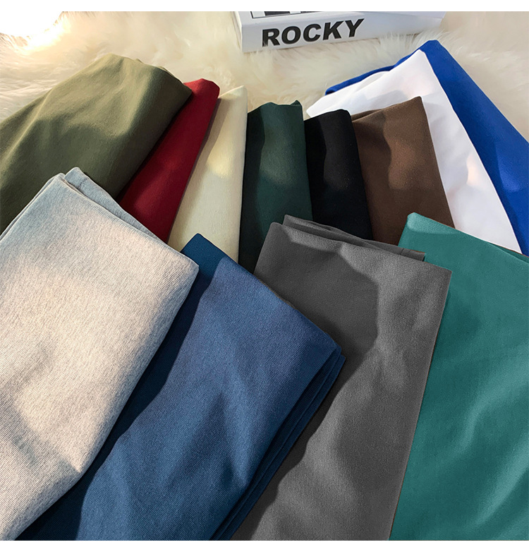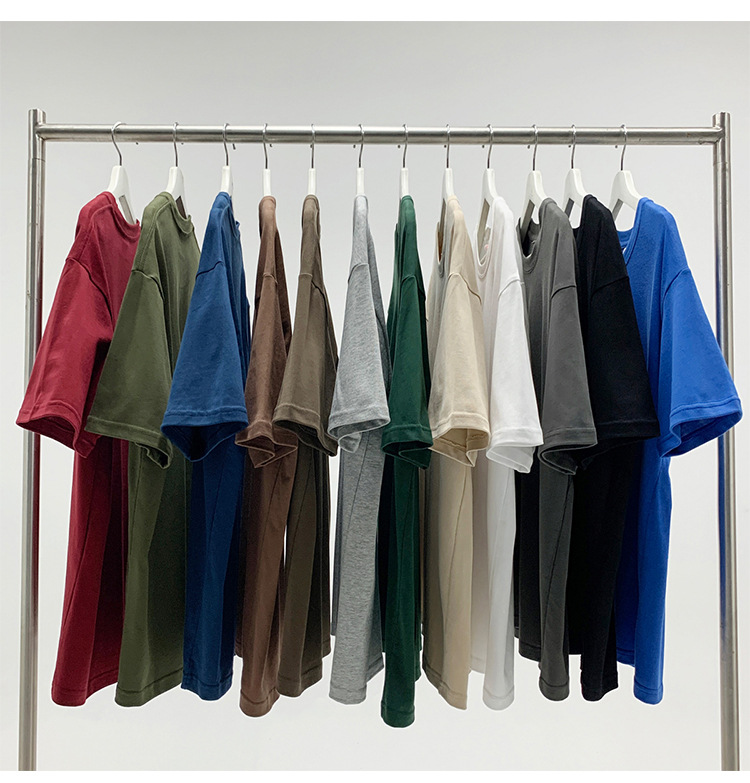 무거운 무게 티셔츠 플러스 사이즈 흰색 순면 짧은 소매 남자와 여자의 순수 블랙 느슨한 단색 라운드 목 반 소매 단색 남성용 착용스토어 가기