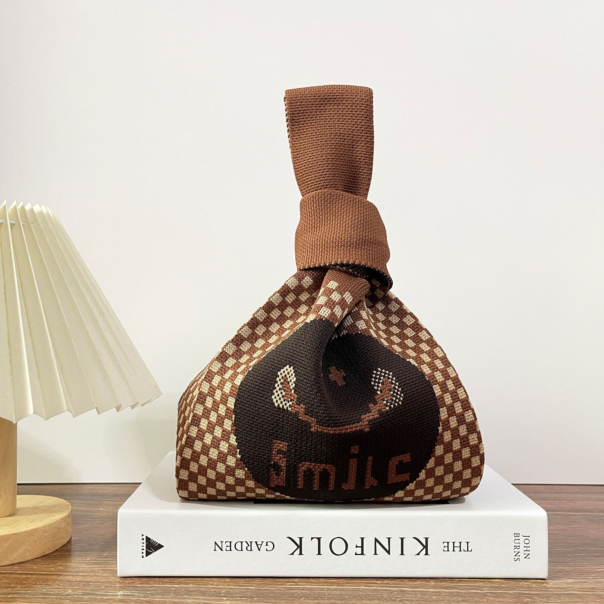 패션 빈티지 스마일 니트 가방 트렌디 한 모든 경기 소녀의 접이식 토트 백 조끼 핸드 버킷 백스토어 가기