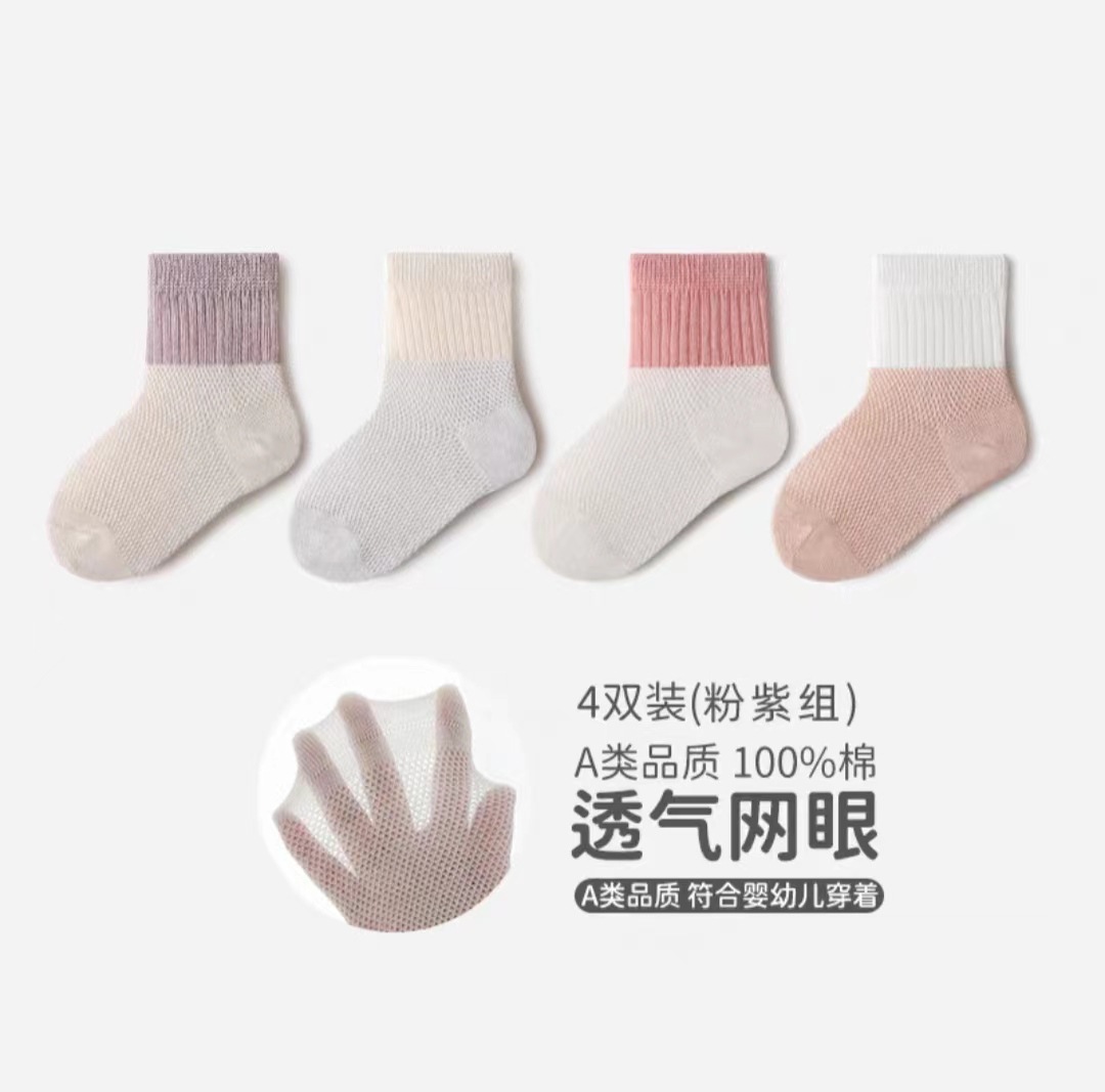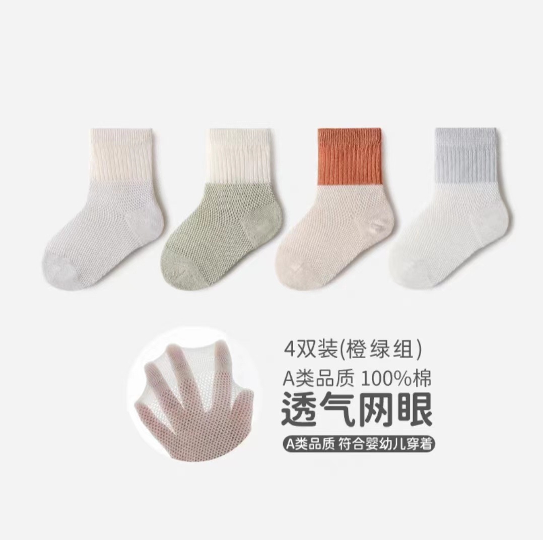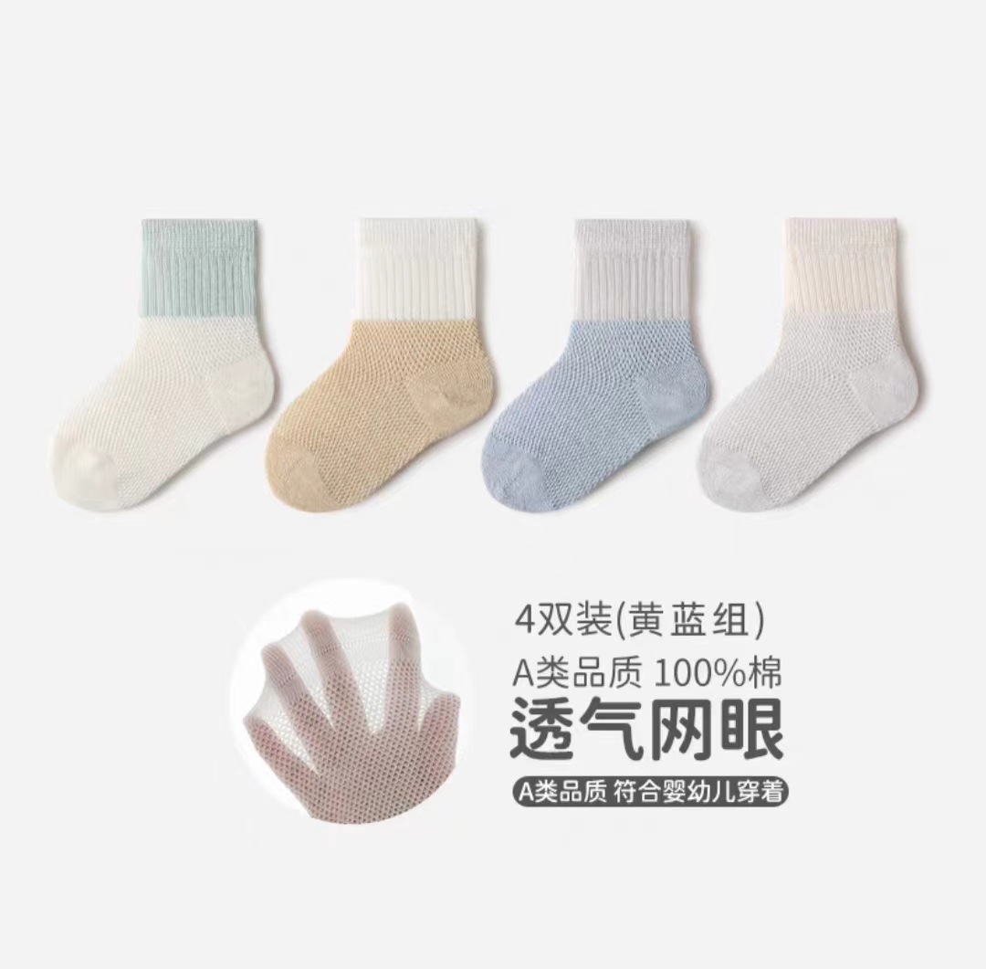 아기 여름 양말 소년과 소녀 단색 메쉬 통기성 얇은 순면 양말 신생아 아기 뼈없는 중간 길이 양말스토어 가기