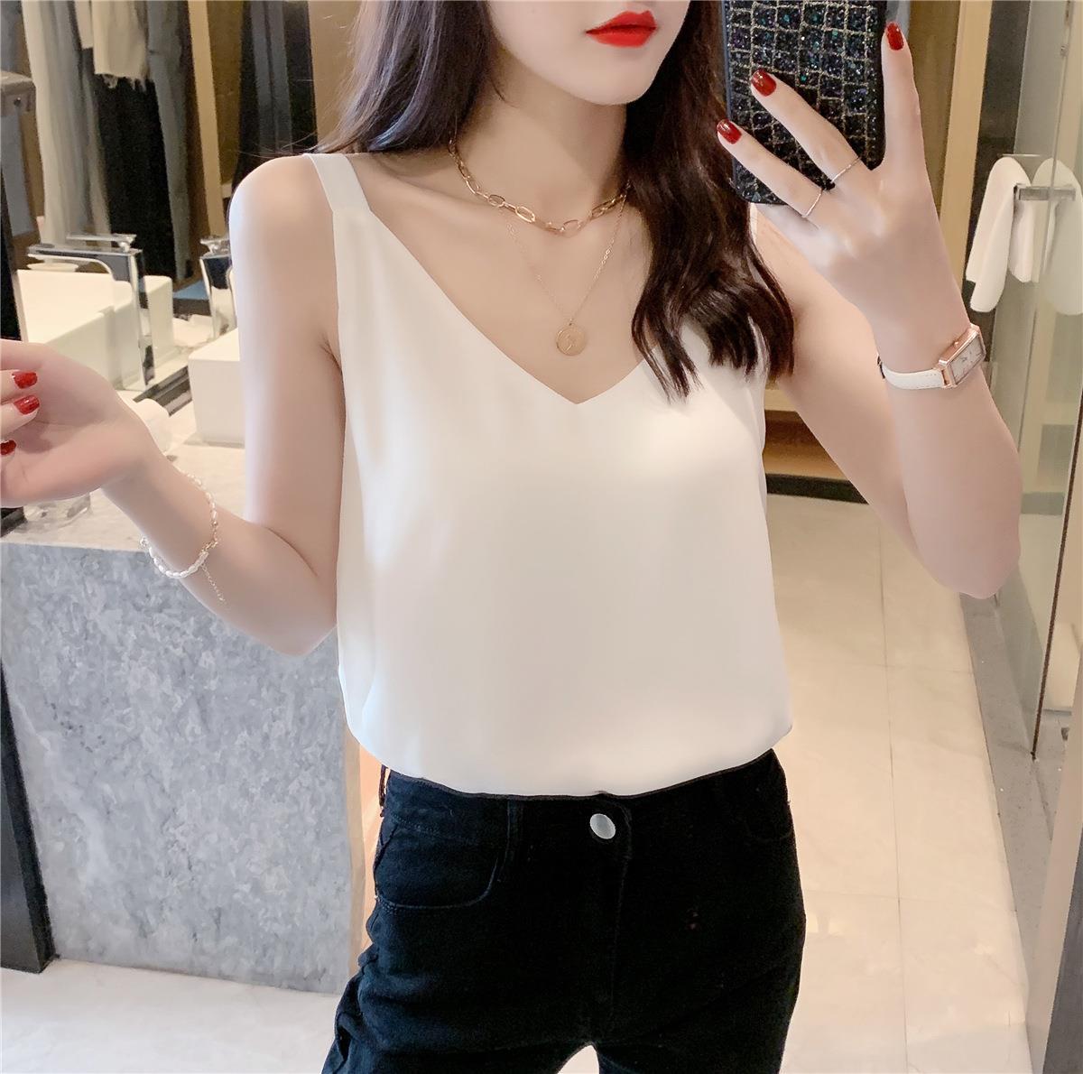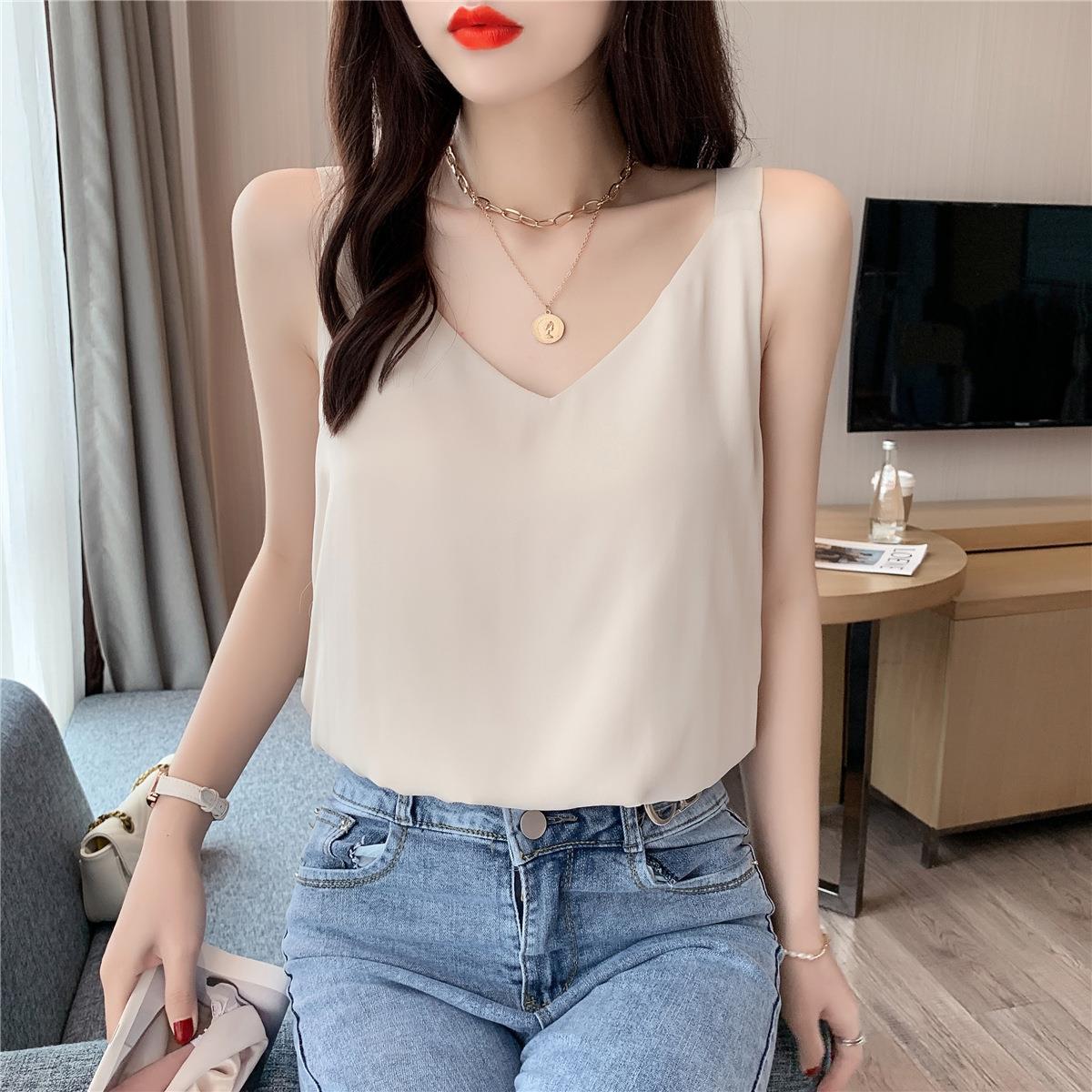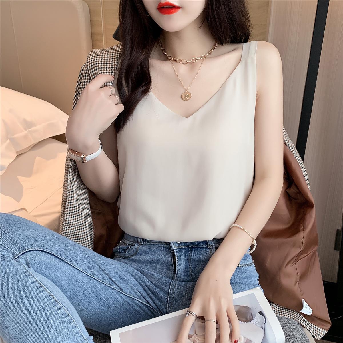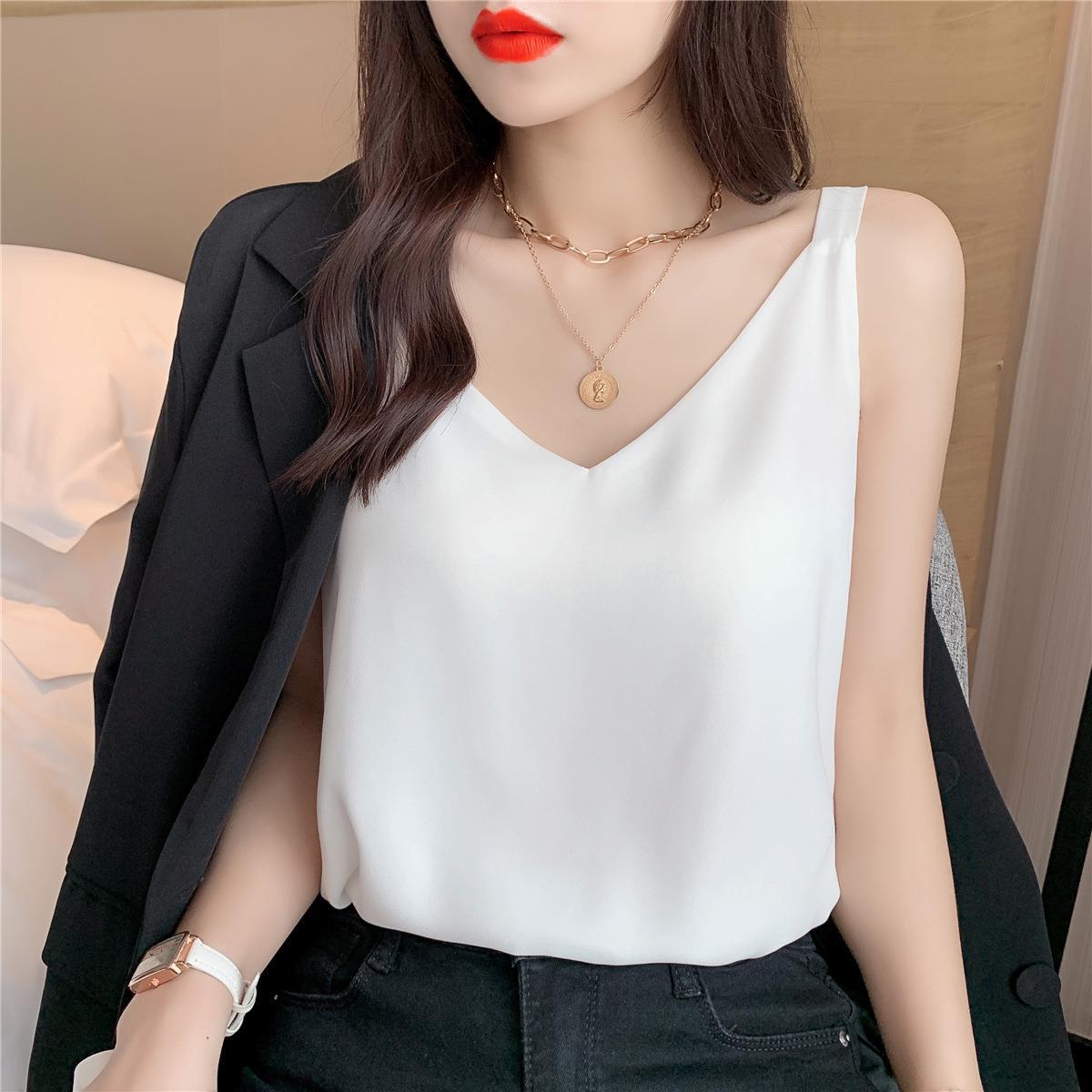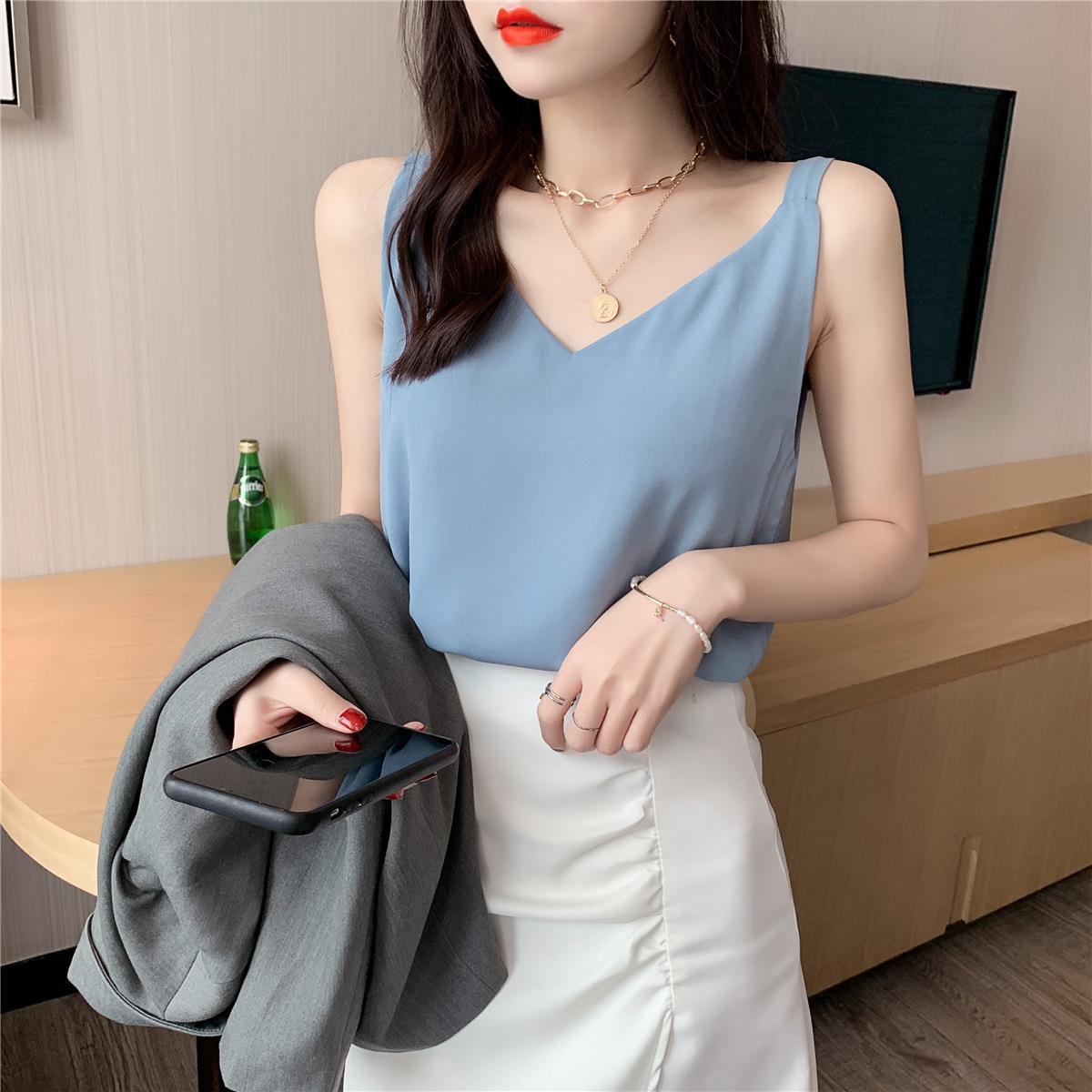 시폰 카미 솔 여자 2023 새로운 V-넥 더블 레이어 느슨한 슬림베이스 셔츠 탑