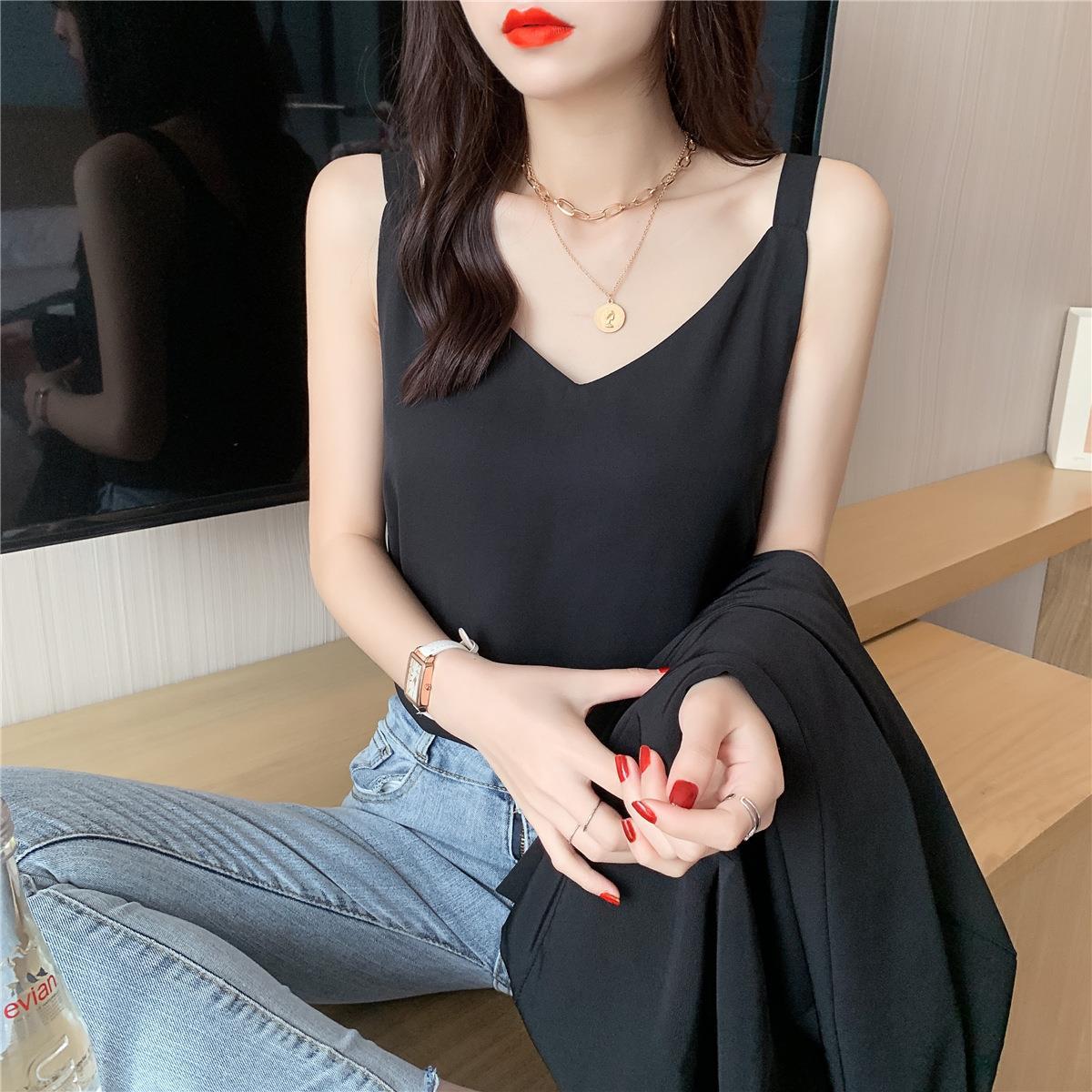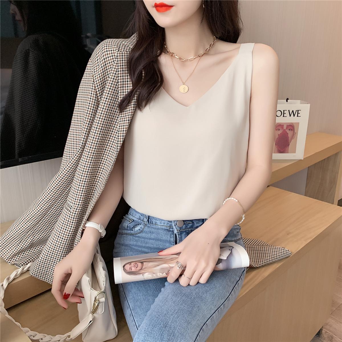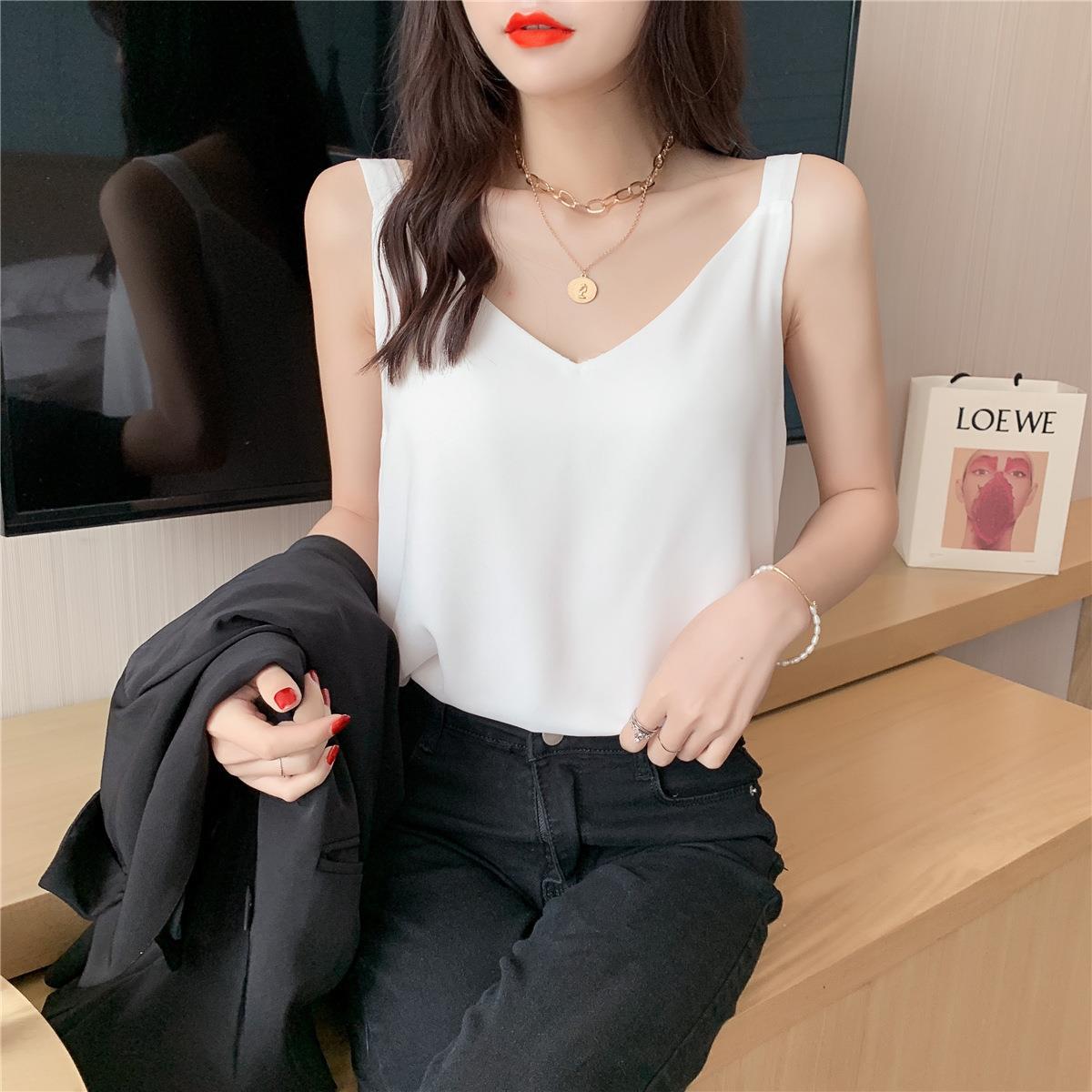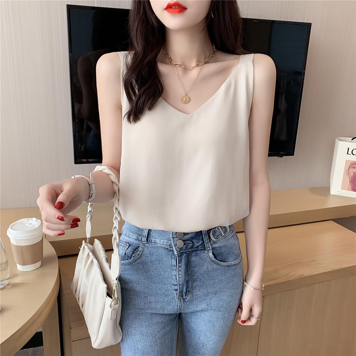 시폰 카미 솔 여자 2023 새로운 V-넥 더블 레이어 느슨한 슬림베이스 셔츠 탑