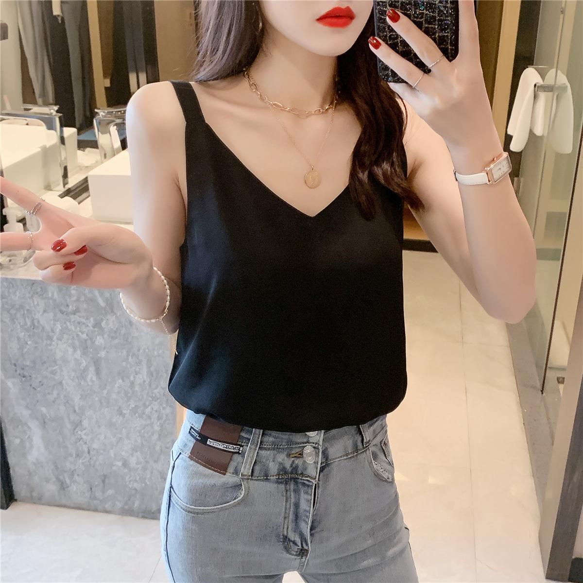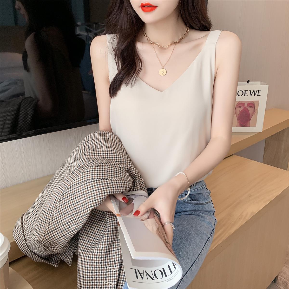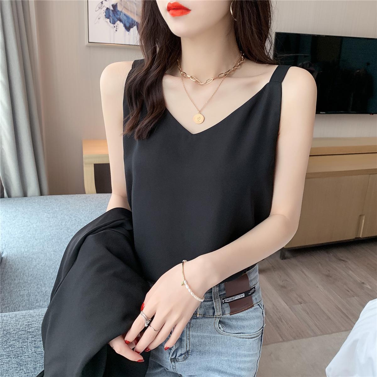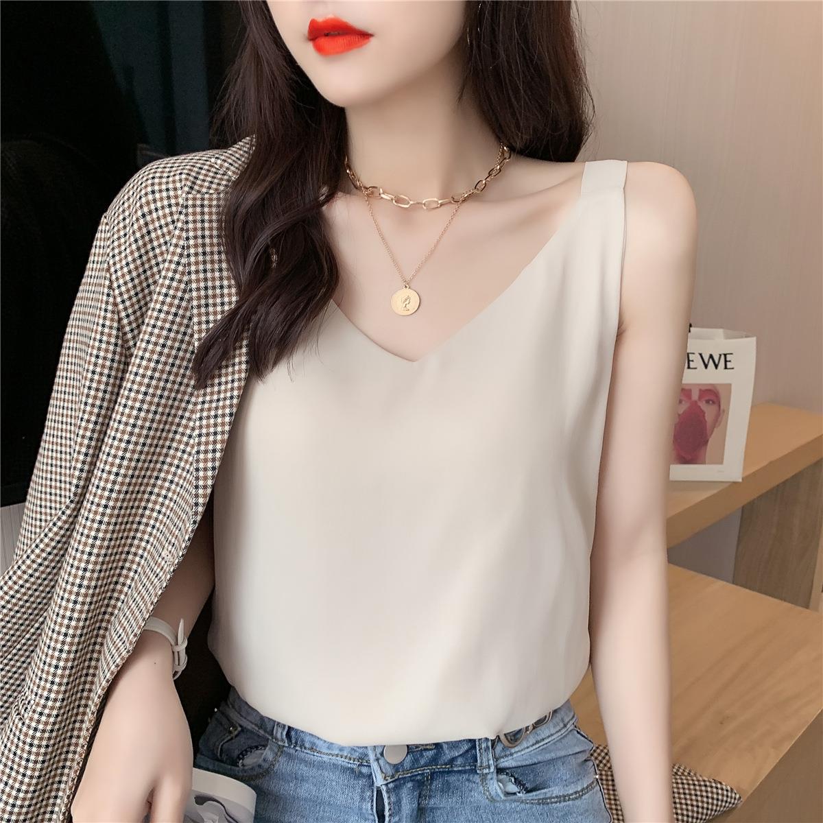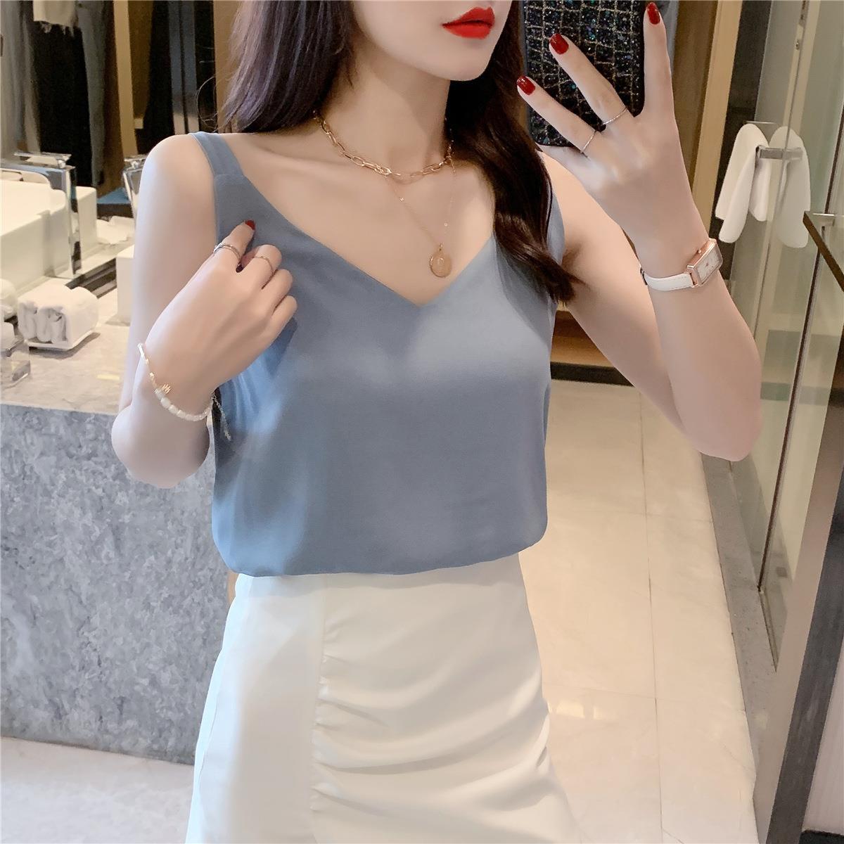 시폰 카미 솔 여자 2023 새로운 V-넥 더블 레이어 느슨한 슬림베이스 셔츠 탑