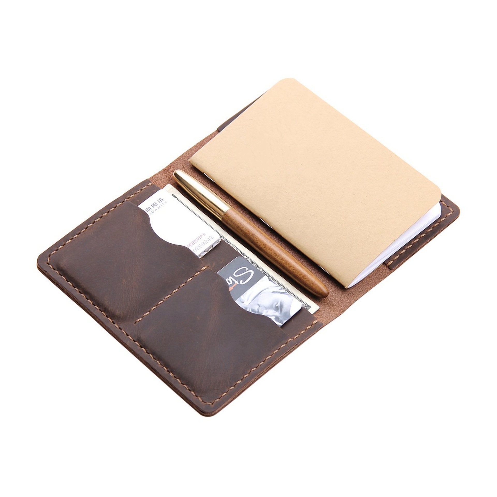 유럽과 미국 레트로 미친 말 가죽 메모장 손 계정 홀더 가죽 케이스 더블 카드 다이어리 다크 다크 브라운 가죽 케이스