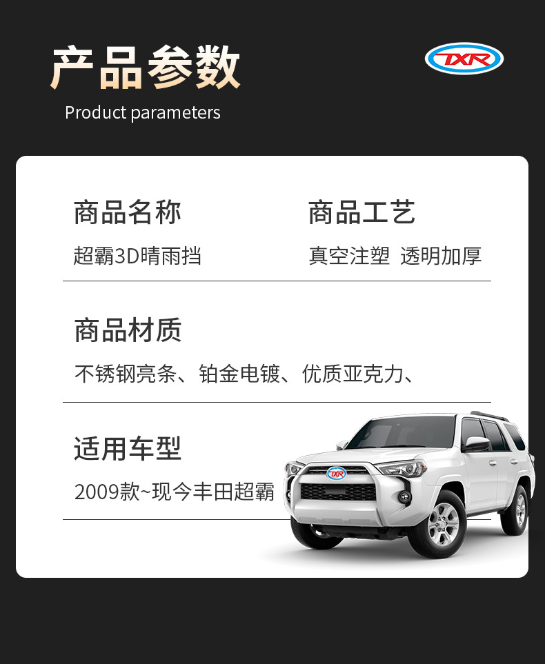 Tesinrui는 Toyota Speedmaster 4 에 적합합니다 러너 레인 쉴드 수정 자동차 창 비 눈썹 레인 쉴드 자동차 부품스토어 가기