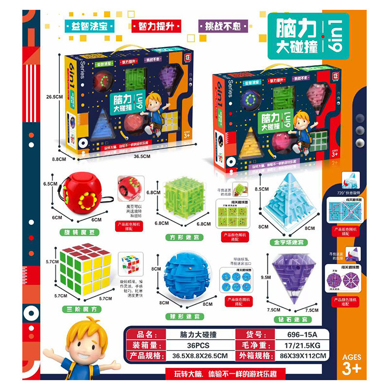어린이 교육 완구 루빅스 큐브 매직빈 6 종 세트 감압 훈련 6 면 미로 장난감 선물 상자 유치원 선물
