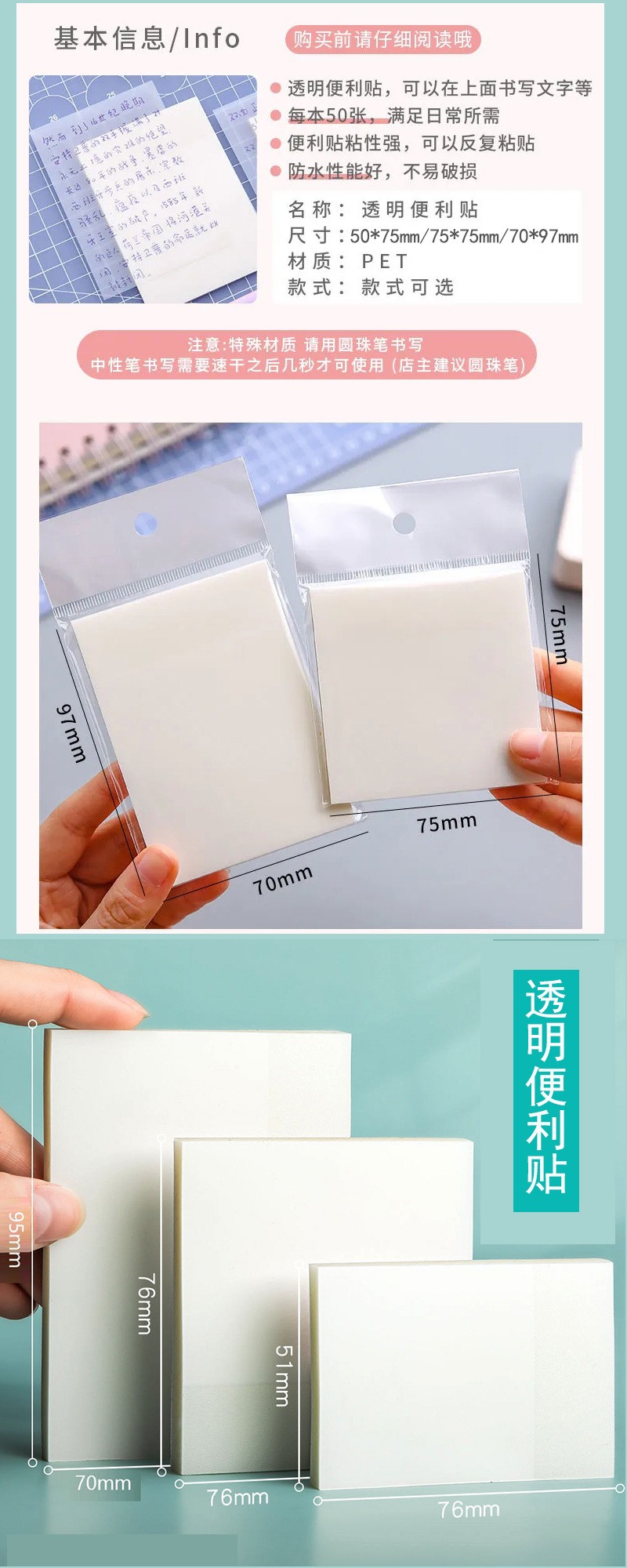 투명 끈적 끈적한 메모 학생 노트 스티커 눈물 간단한 메모 용지 N 번 노트 노트 노트스토어 가기