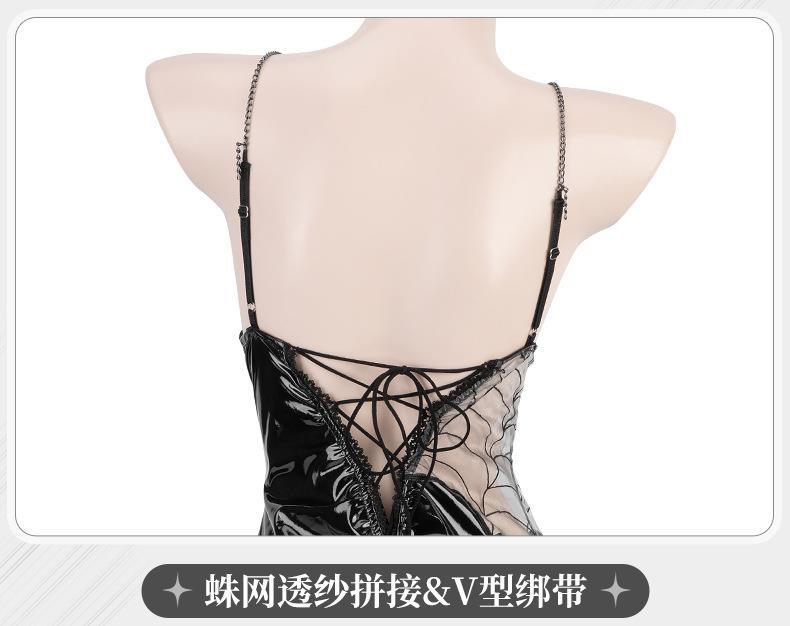 남자 연기 거미 소녀 섹시한 속옷 섹시한 멜빵 거미 웹 관점 에나멜 가죽 꽉 엉덩이 스커트 8919스토어 가기
