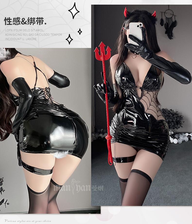 남자 연기 거미 소녀 섹시한 속옷 섹시한 멜빵 거미 웹 관점 에나멜 가죽 꽉 엉덩이 스커트 8919