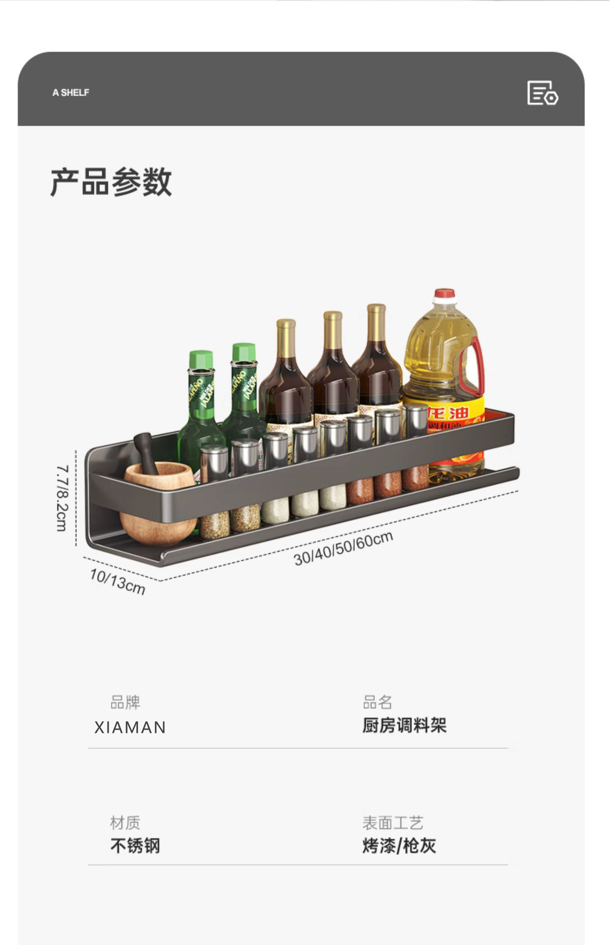 • [총 회색] 단일 스테인레스 스틸 조미료 랙 50CM