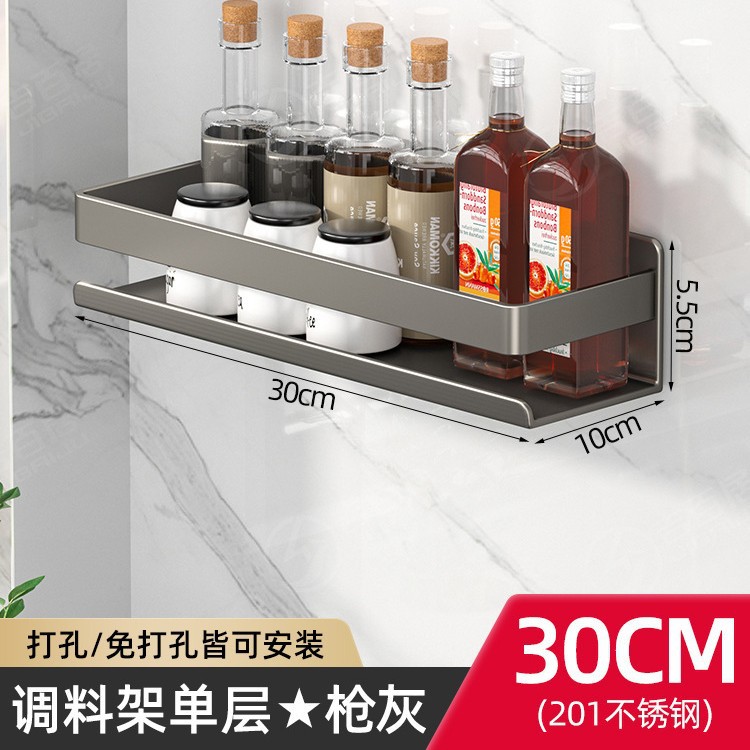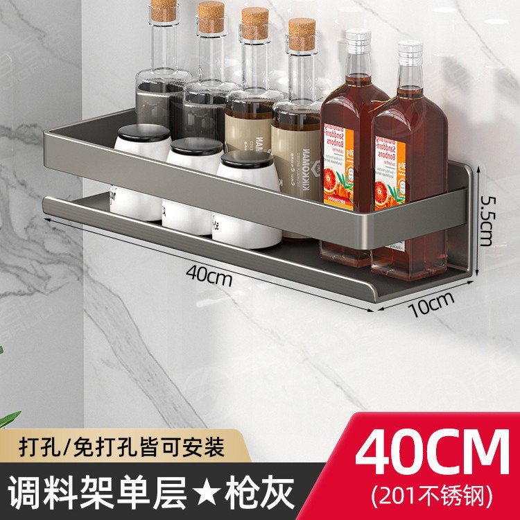 논펀칭 건 그레이 주방 조미료 랙 벽걸이 이중 층 조미료 다기능 보관 랙 도매스토어 가기
