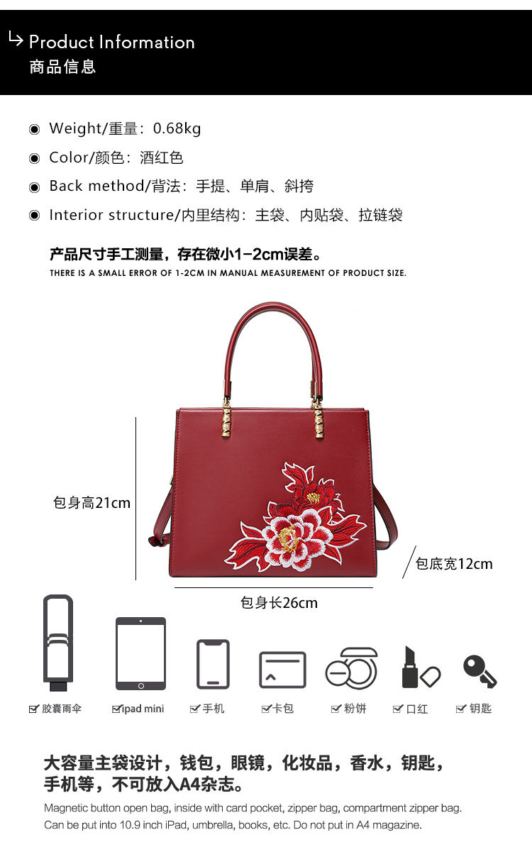 웨딩 신부 가방 핸드백 여성의 새로운 민족 자수 레드 우아한 자수 어깨 크로스 백 8092