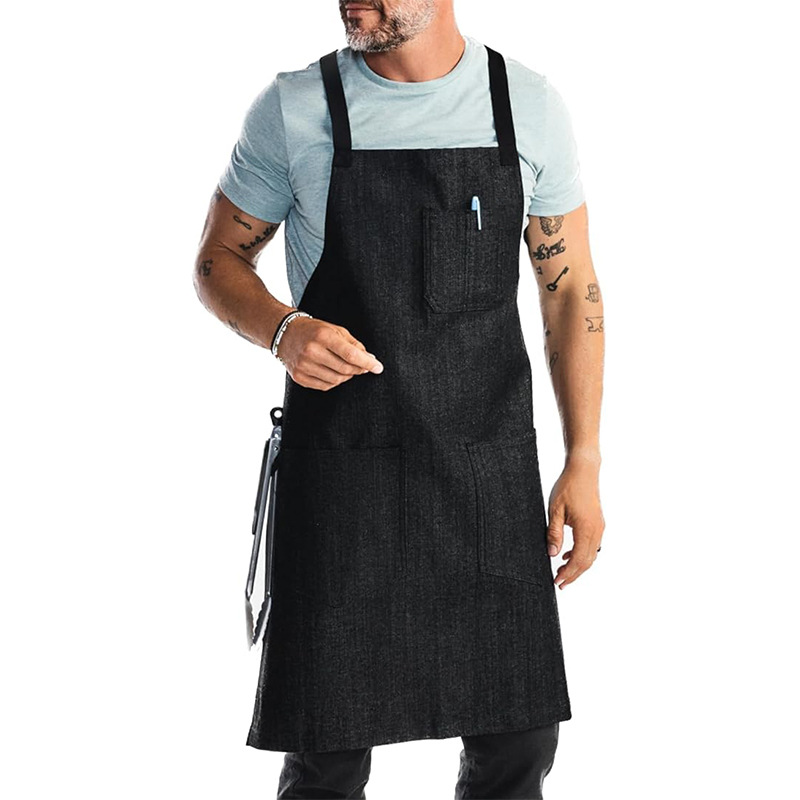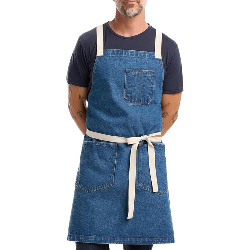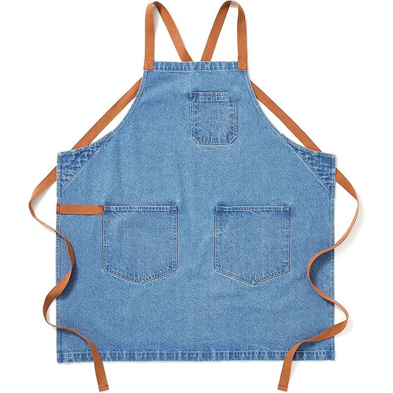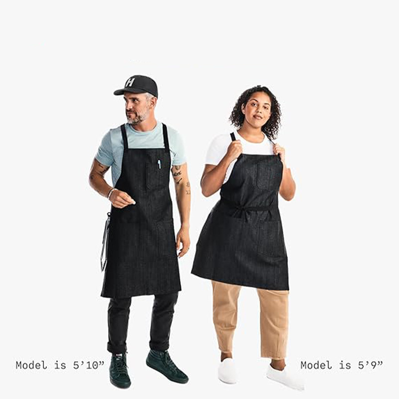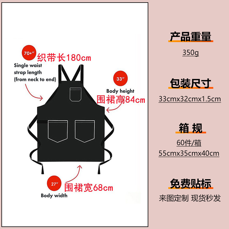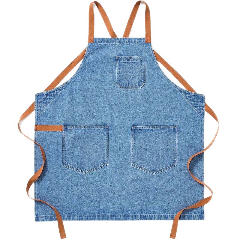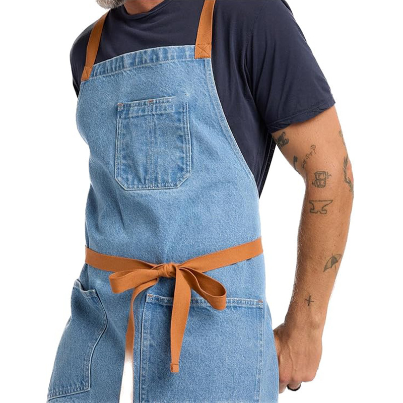 厂家直销跨境亚马逊牛仔纯棉背带围裙餐厅奶茶店咖啡厅围裙印logo