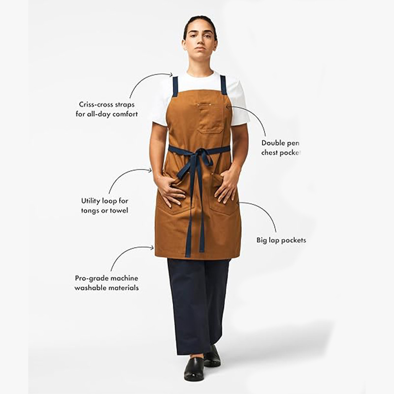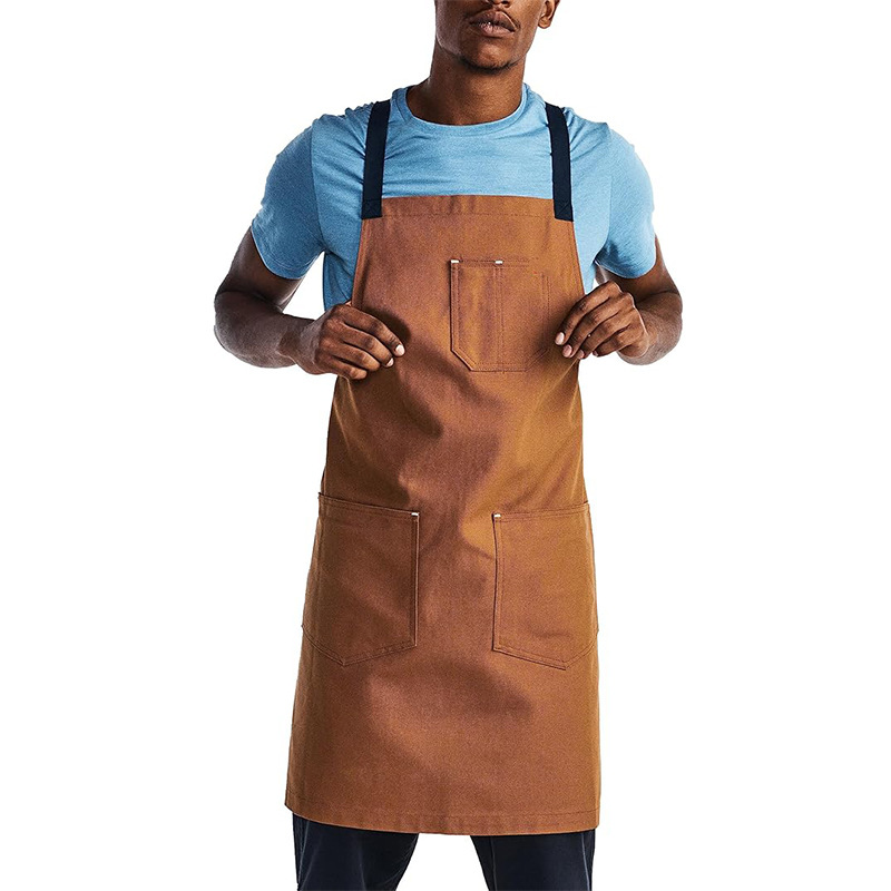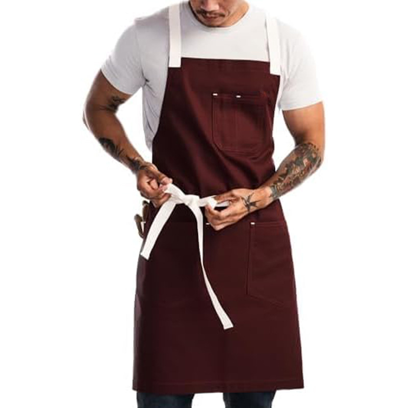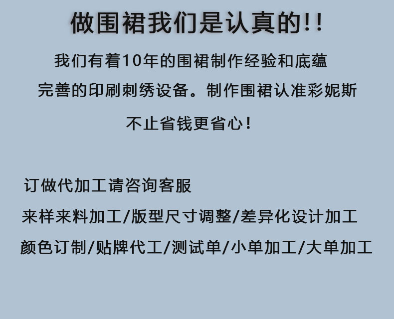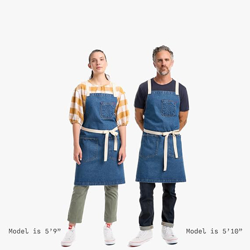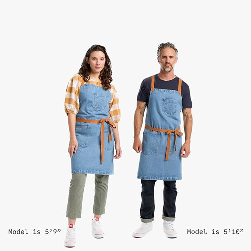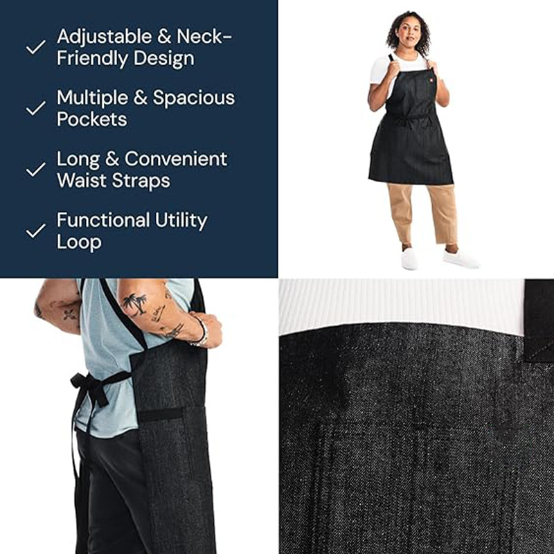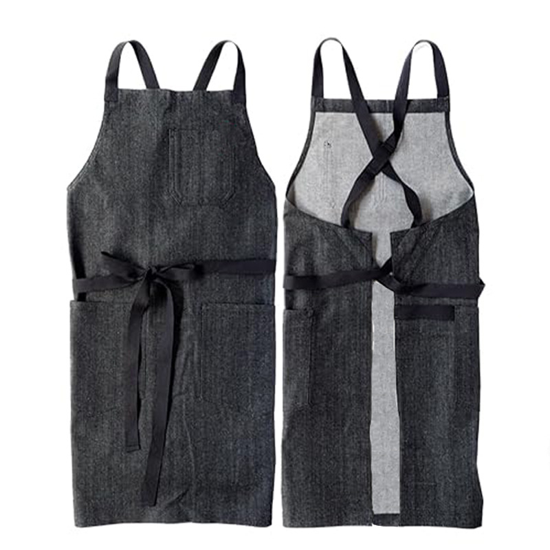 厂家直销跨境亚马逊牛仔纯棉背带围裙餐厅奶茶店咖啡厅围裙印logo