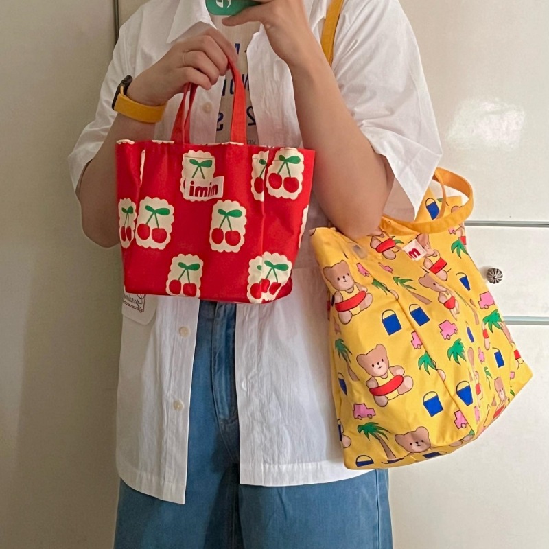 인 스타일 한국 핸드백 방수 가방 비치 가방 도시락 도시락 가방 귀여운 인쇄 3 차원 어깨 핸드백스토어 가기