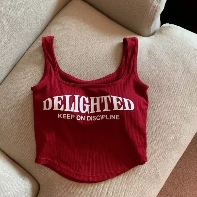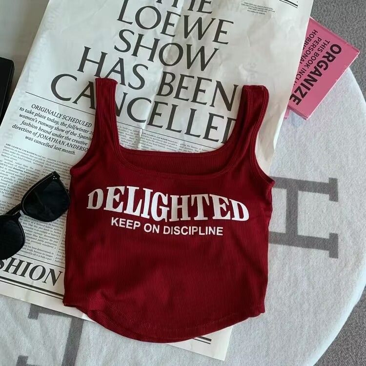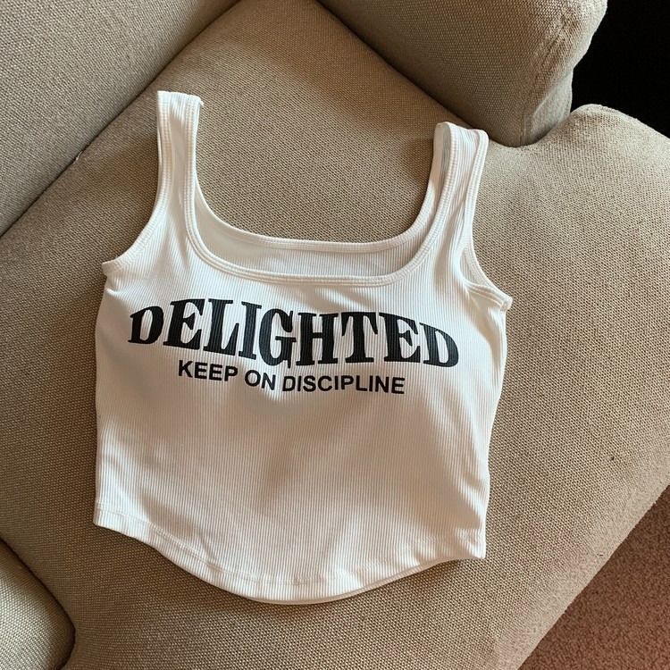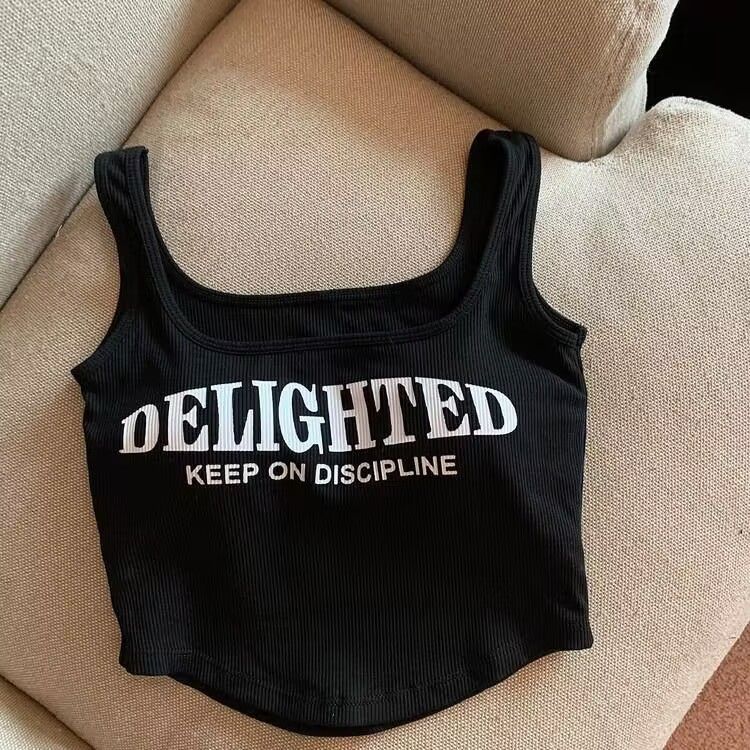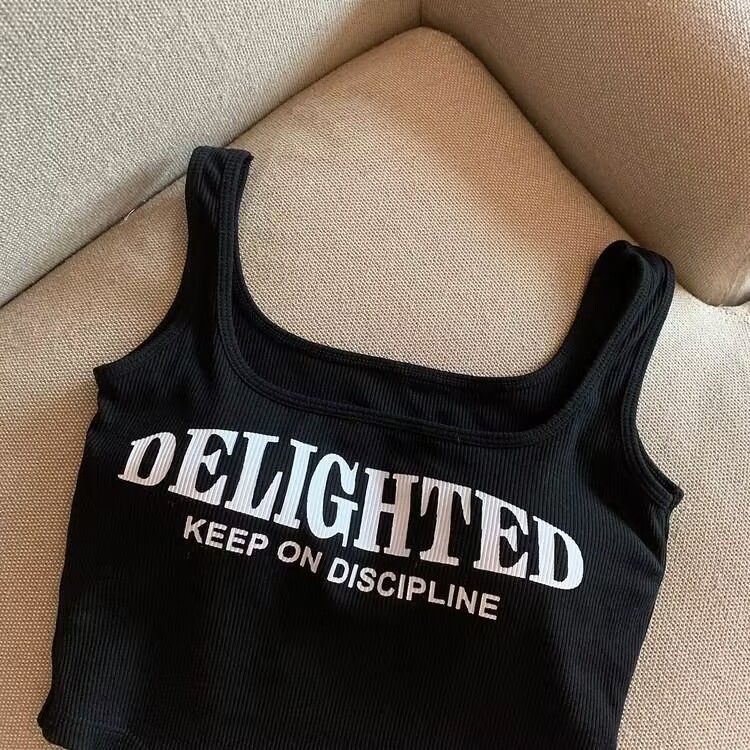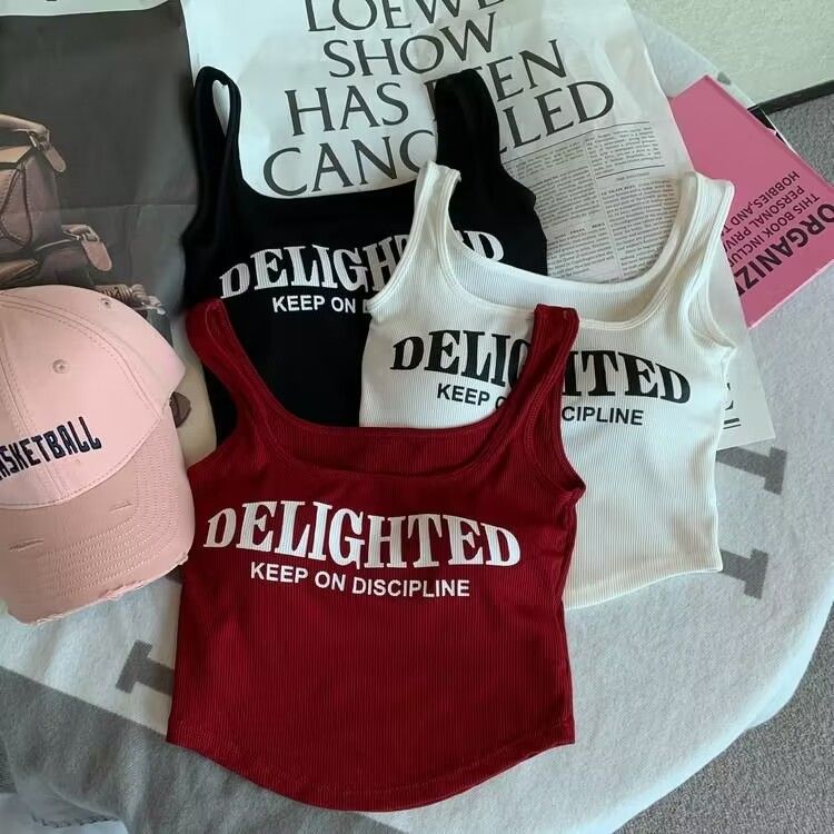 프랑스 달콤하고 매운 순수한 욕망 스타일 모든 일치 편지 인쇄 뜨거운 소녀 가슴 패드 조끼 최고 여성 여름 섹시한 슬링 스트랩스토어 가기