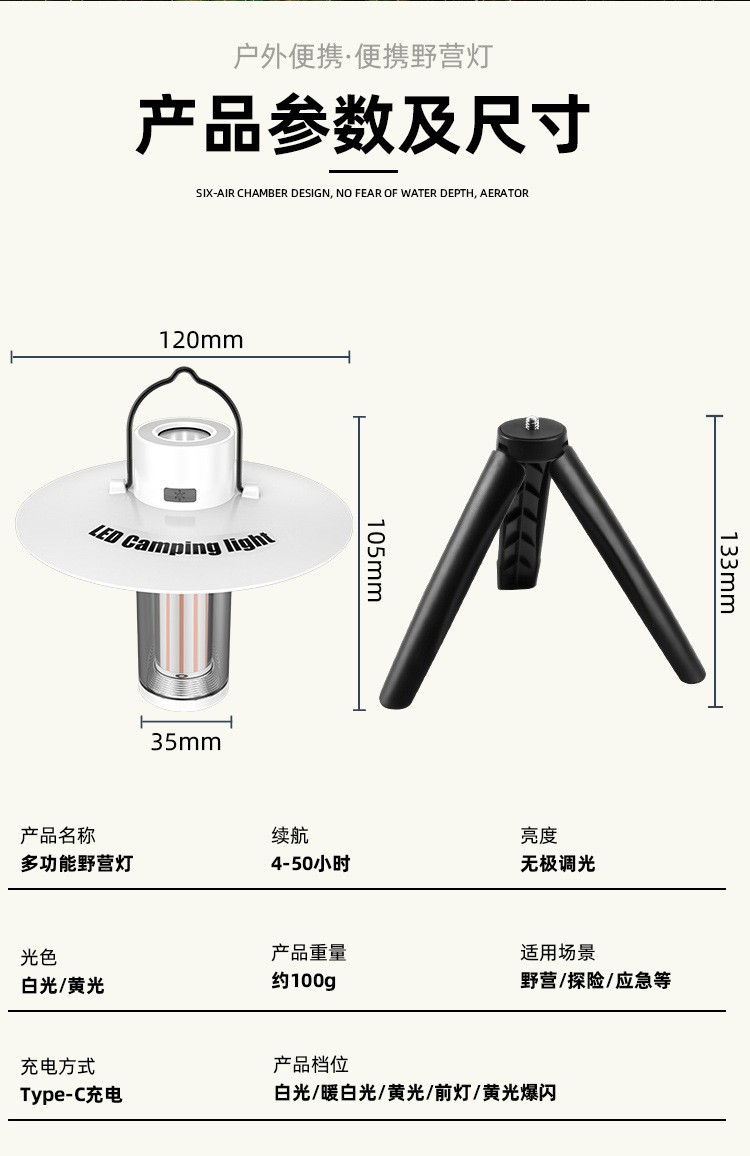 캠핑 라이트 손전등 새로운 야외 등대 LED 조명 캠프 라이트 미니 휴대용 USB 충전식 비상 캠핑스토어 가기