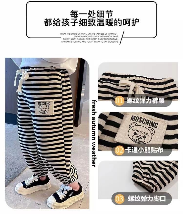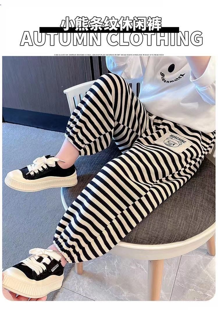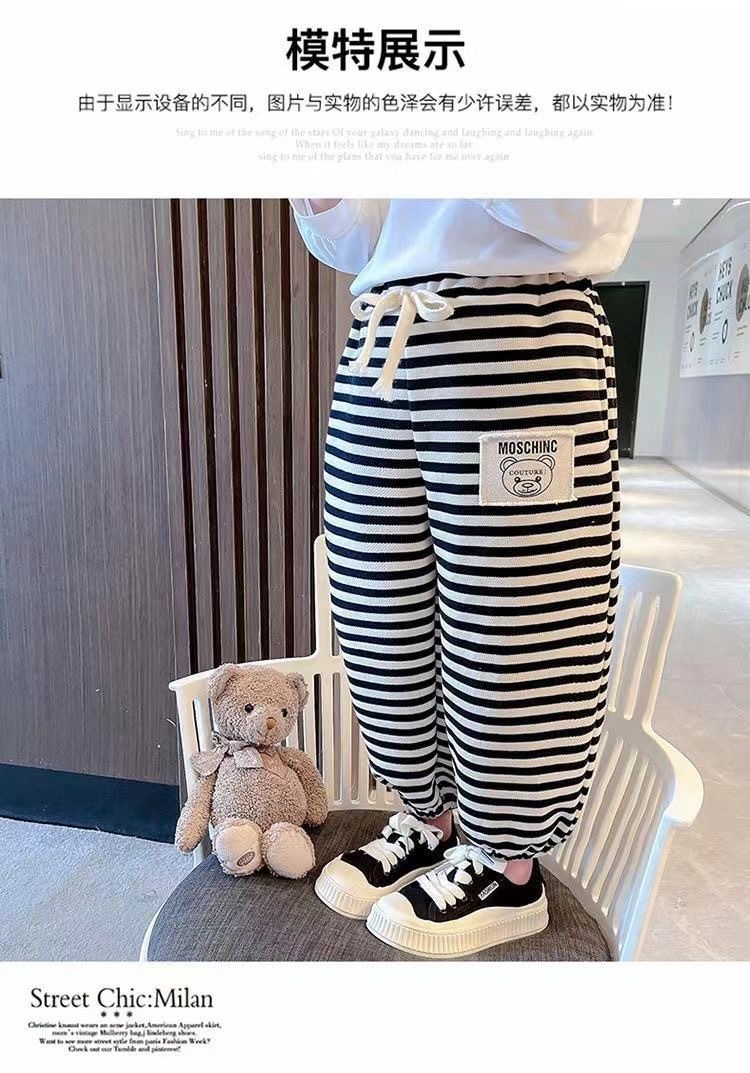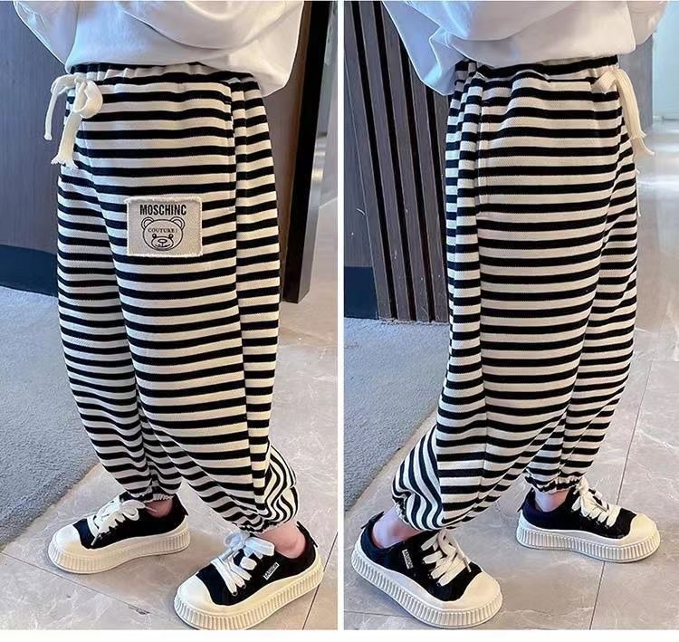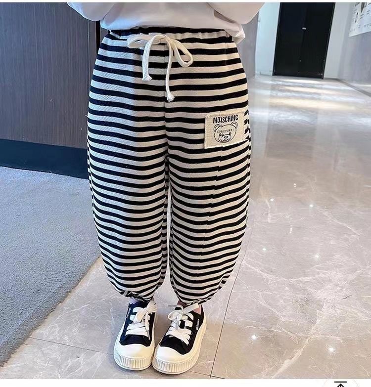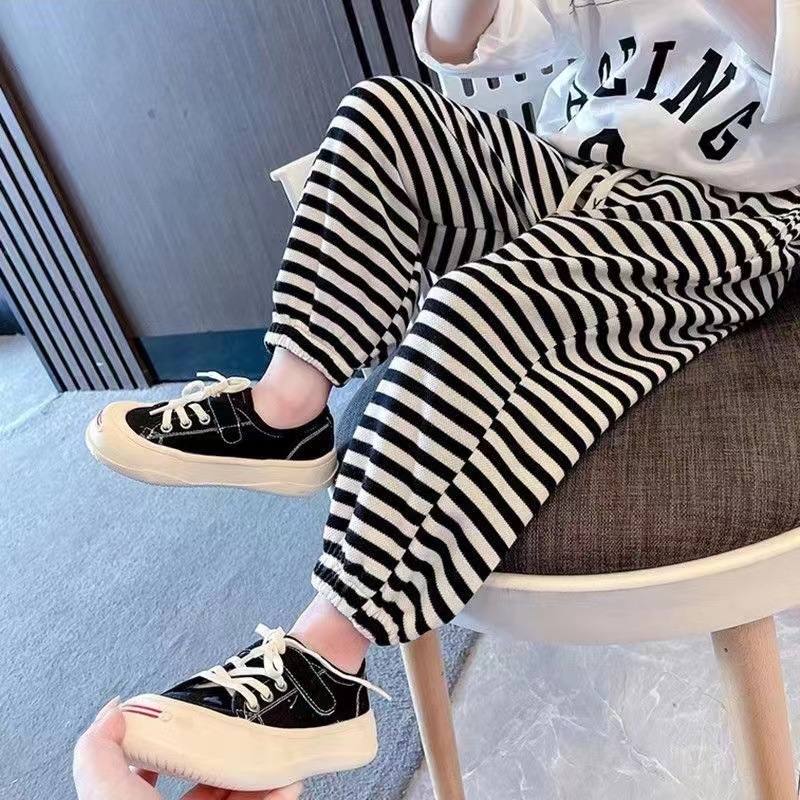 소년 소녀를위한 어린이 봄과 가을 땀 바지 줄무늬 캐주얼 통기성 얇은 블루머 아기의 외부 착용 느슨한 긴 바지스토어 가기