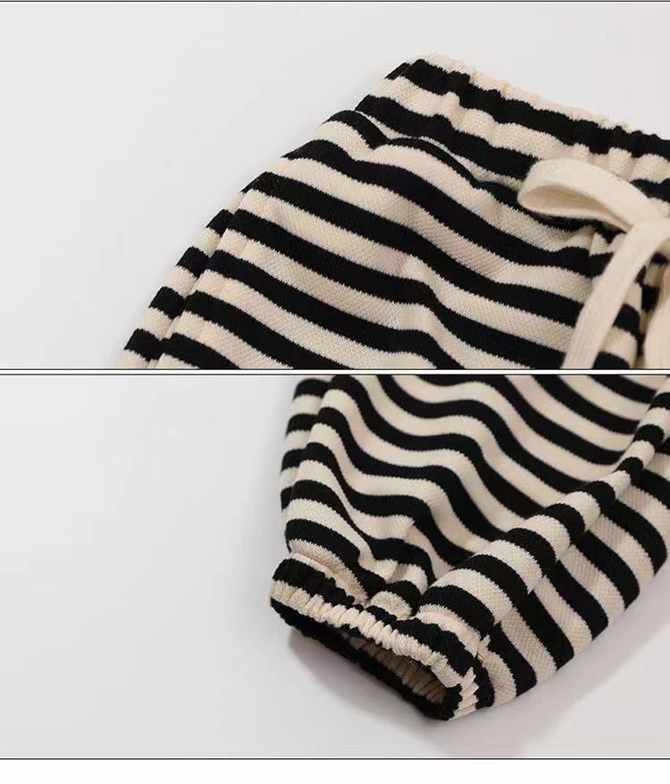 소년 소녀를위한 어린이 봄과 가을 땀 바지 줄무늬 캐주얼 통기성 얇은 블루머 아기의 외부 착용 느슨한 긴 바지