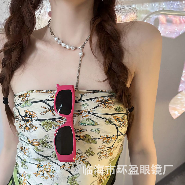 미국식 핑크 레터링 선글라스 여성 패션 스타일리시한 작은 프레임 레트로 고급스러운 인기 Y2K 선글라스스토어 가기