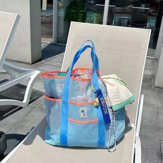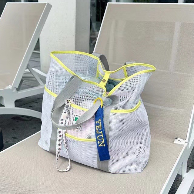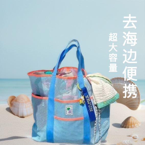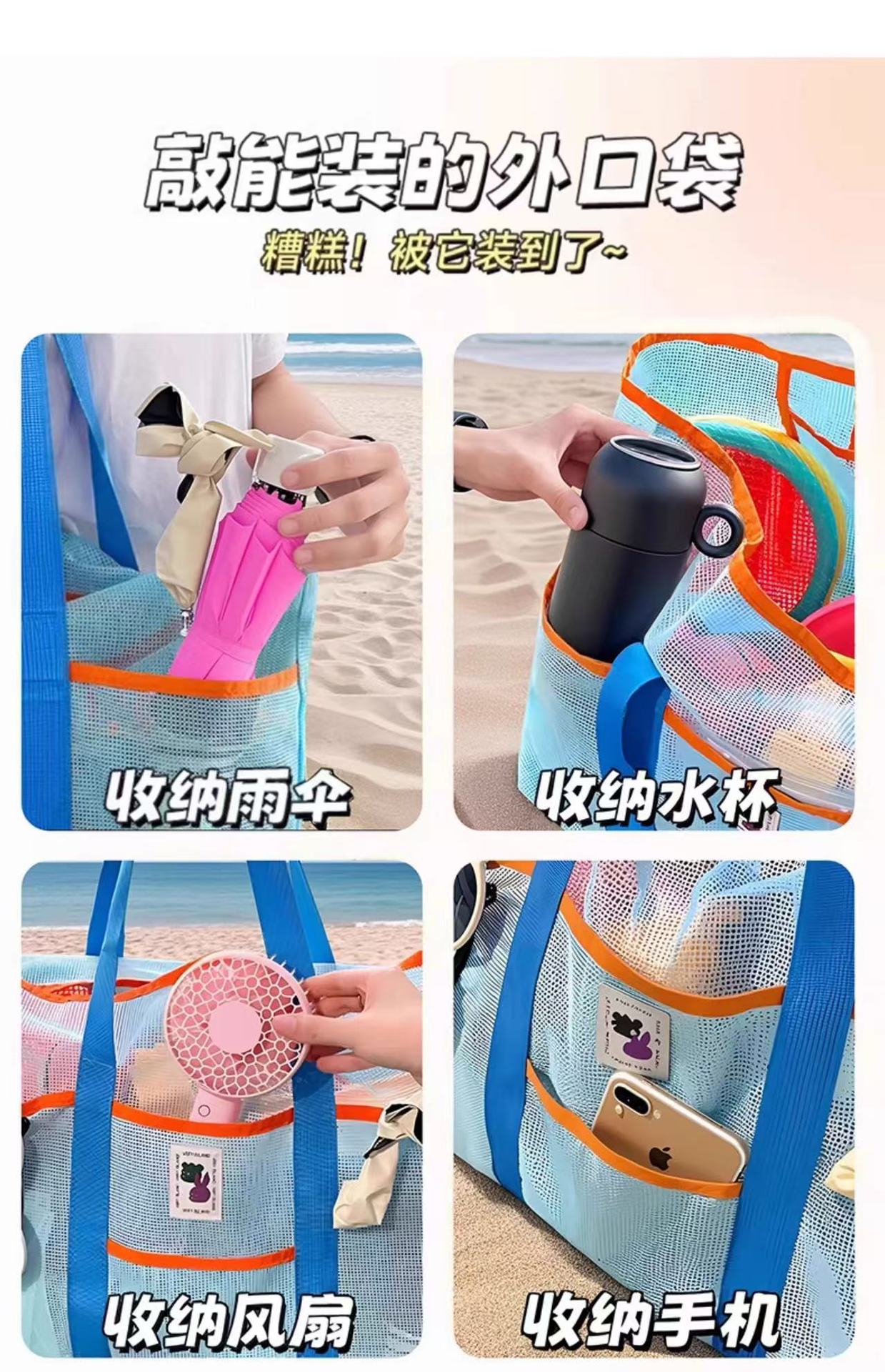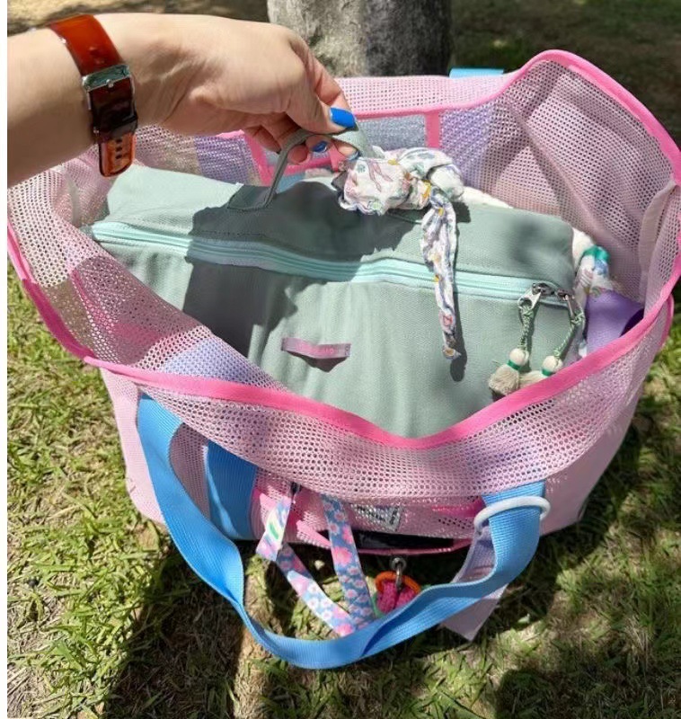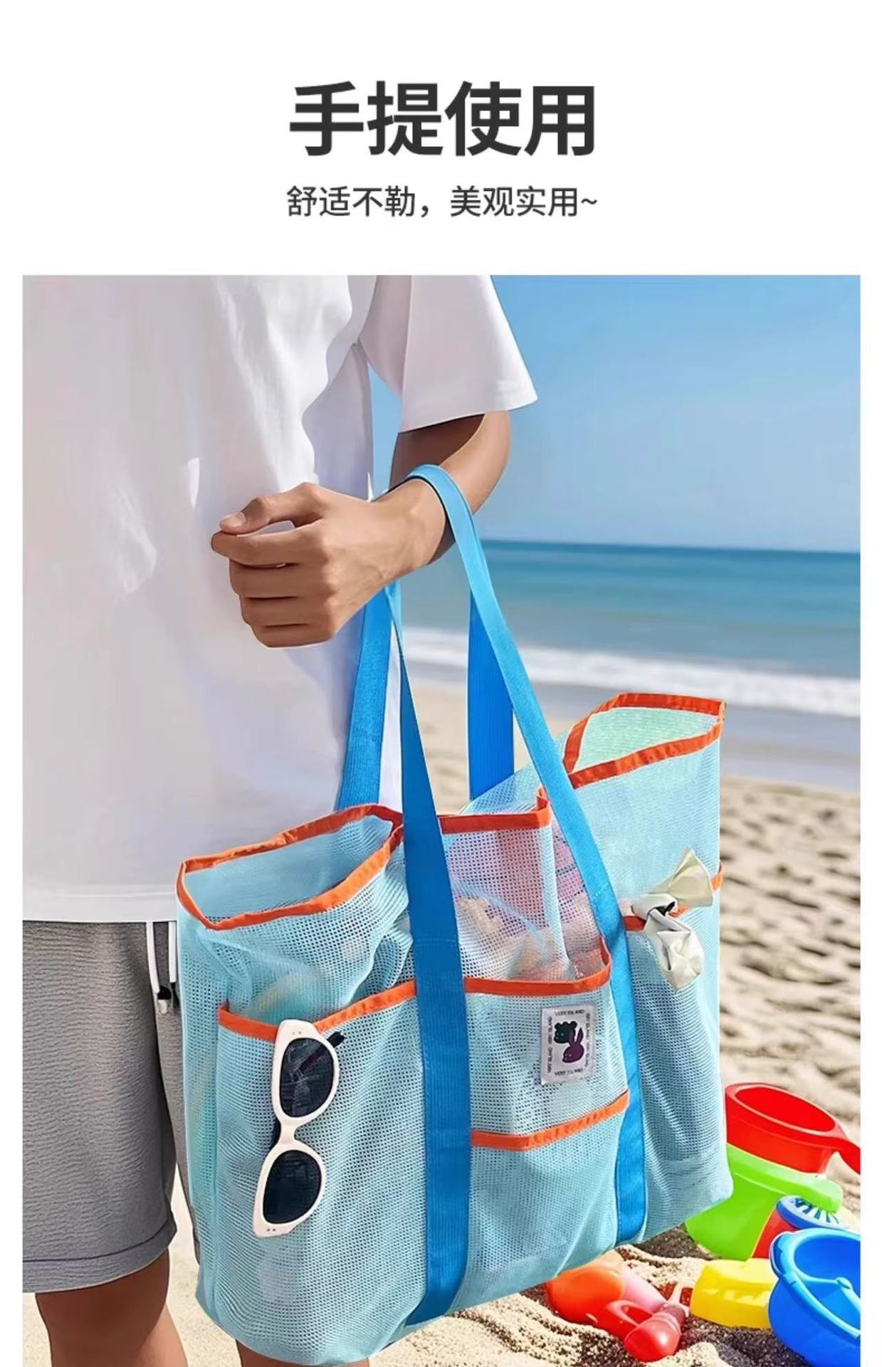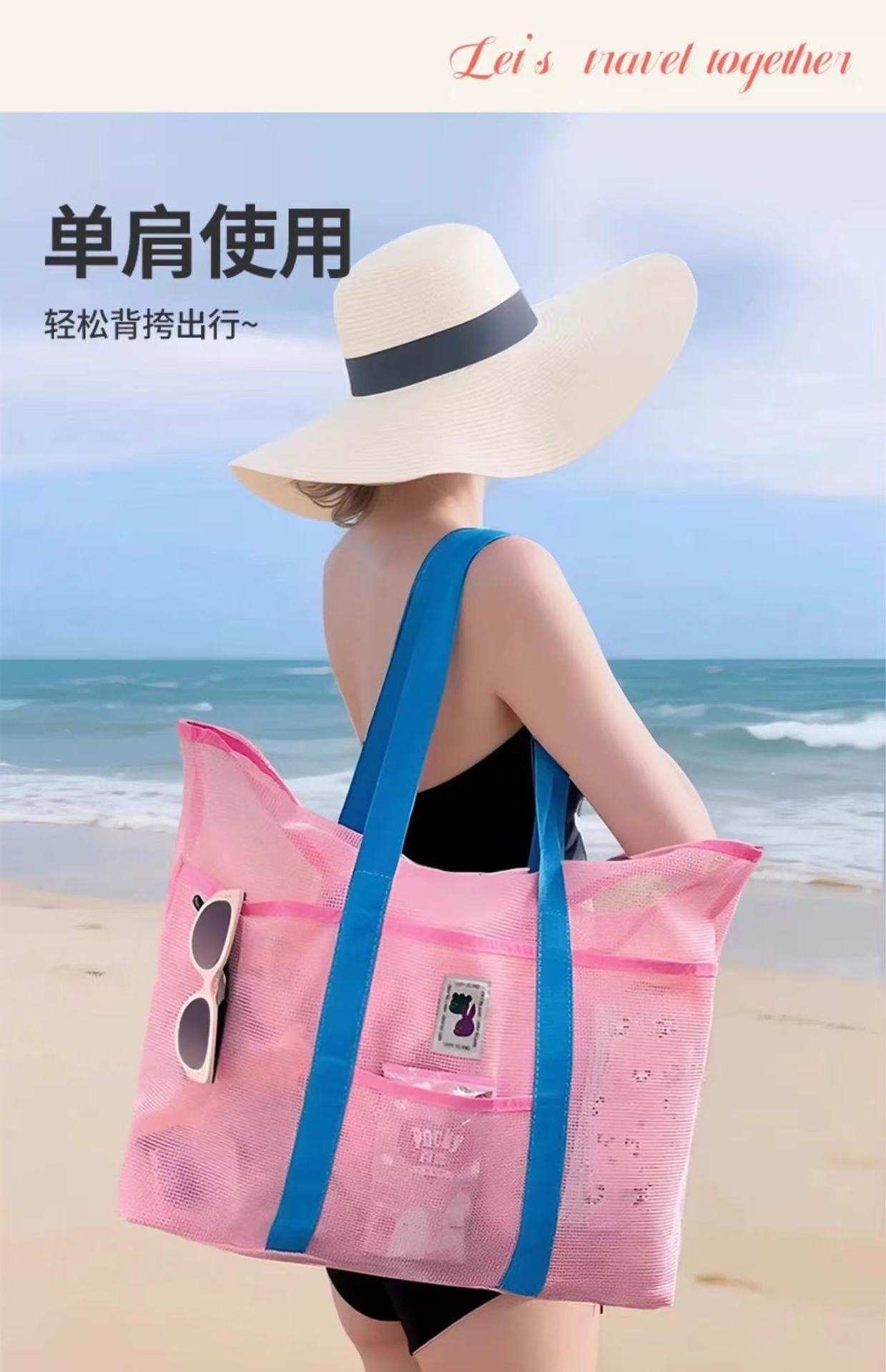 优质网纱透气沥水超大容量沙滩包游泳包洗漱收纳手提袋柔软超轻可折叠。