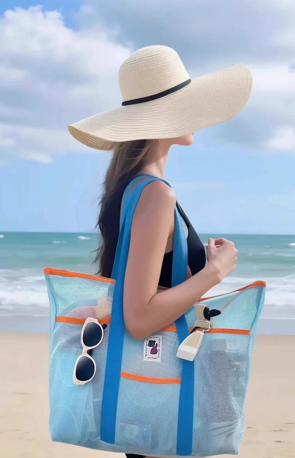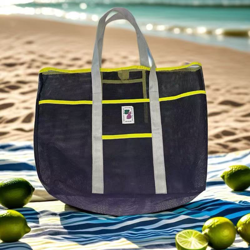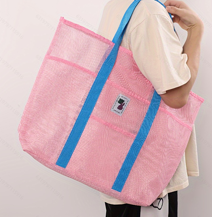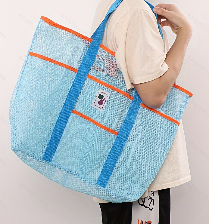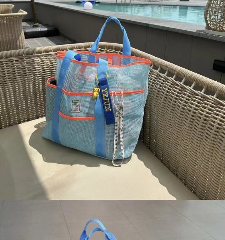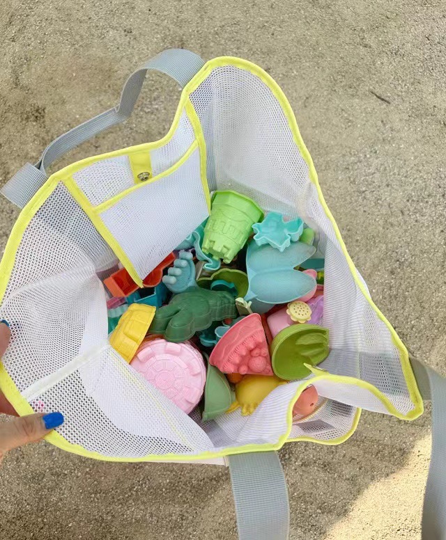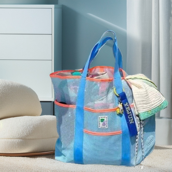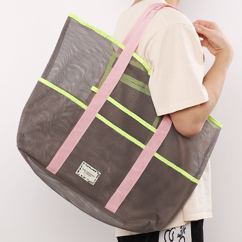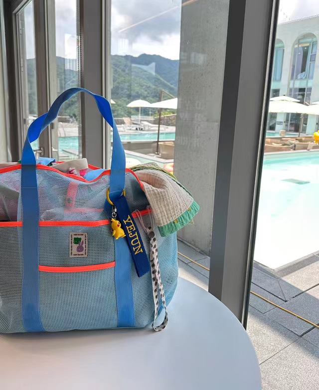 优质网纱透气沥水超大容量沙滩包游泳包洗漱收纳手提袋柔软超轻可折叠。