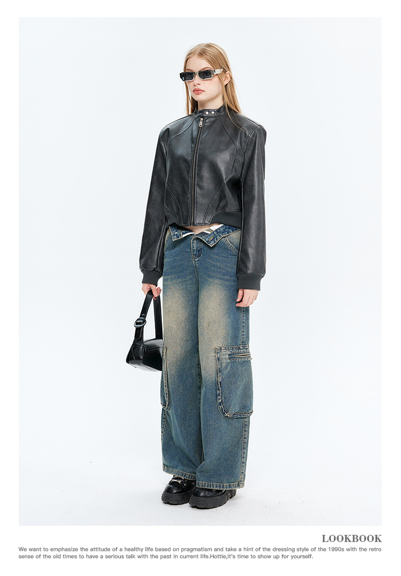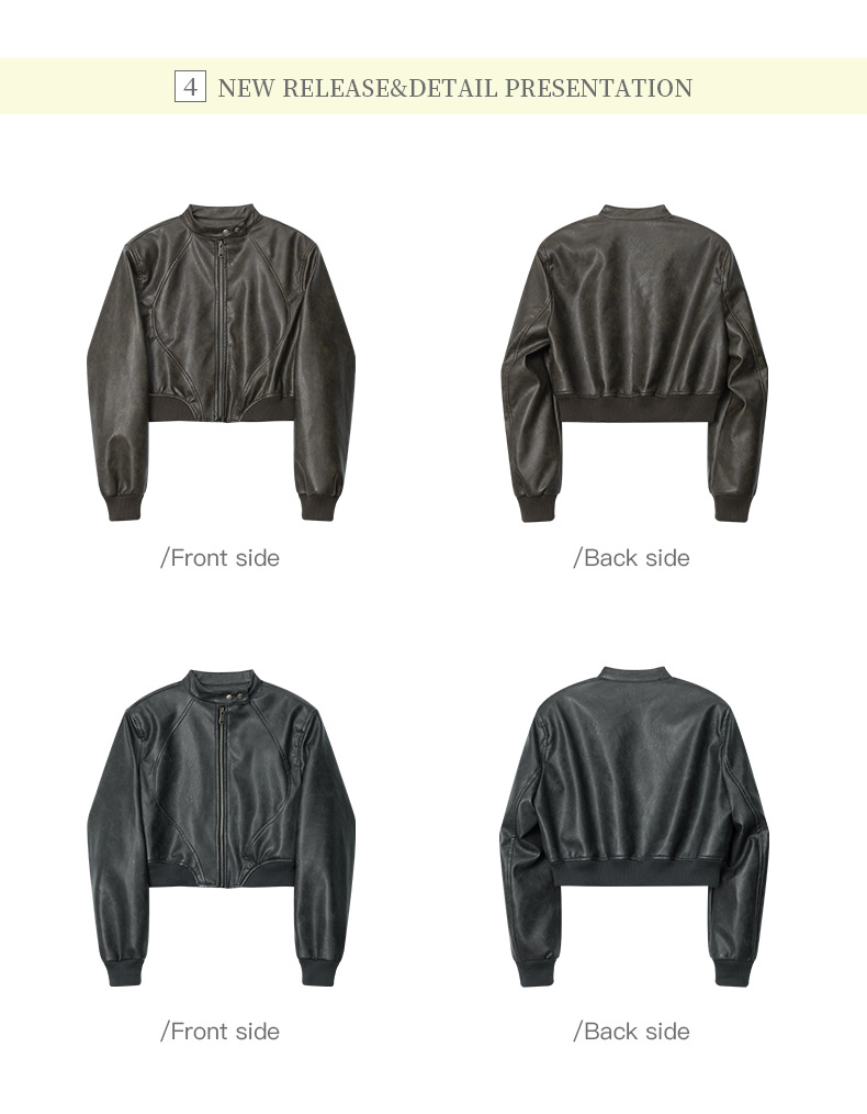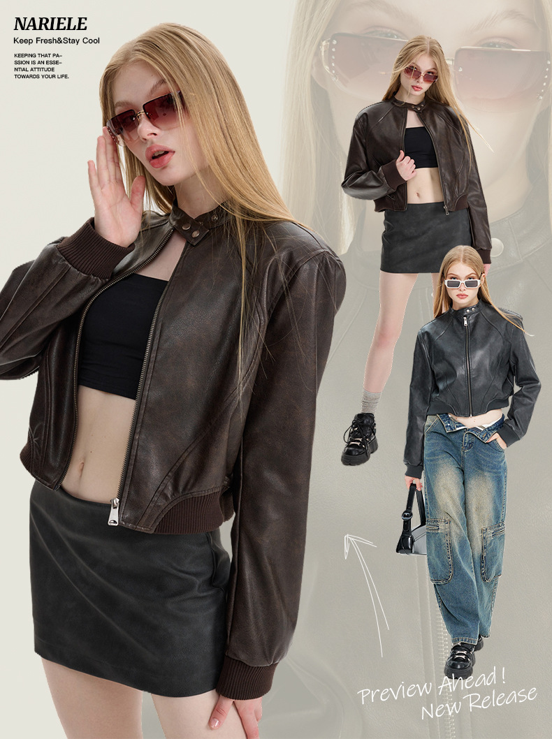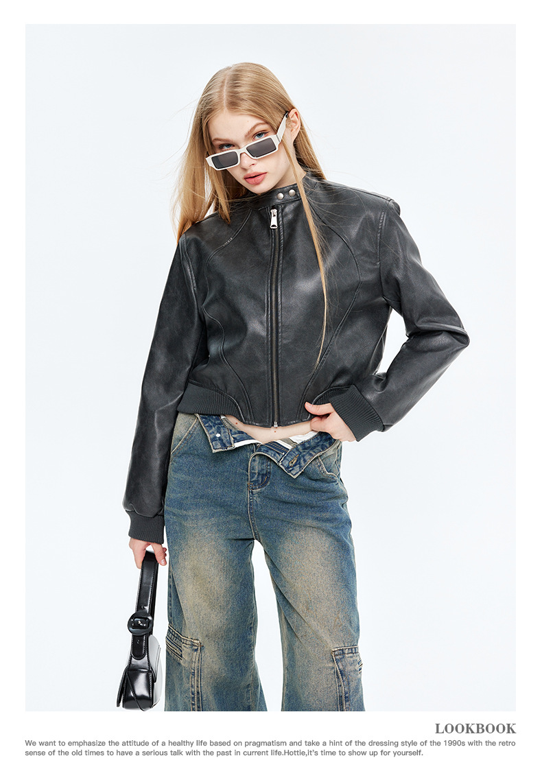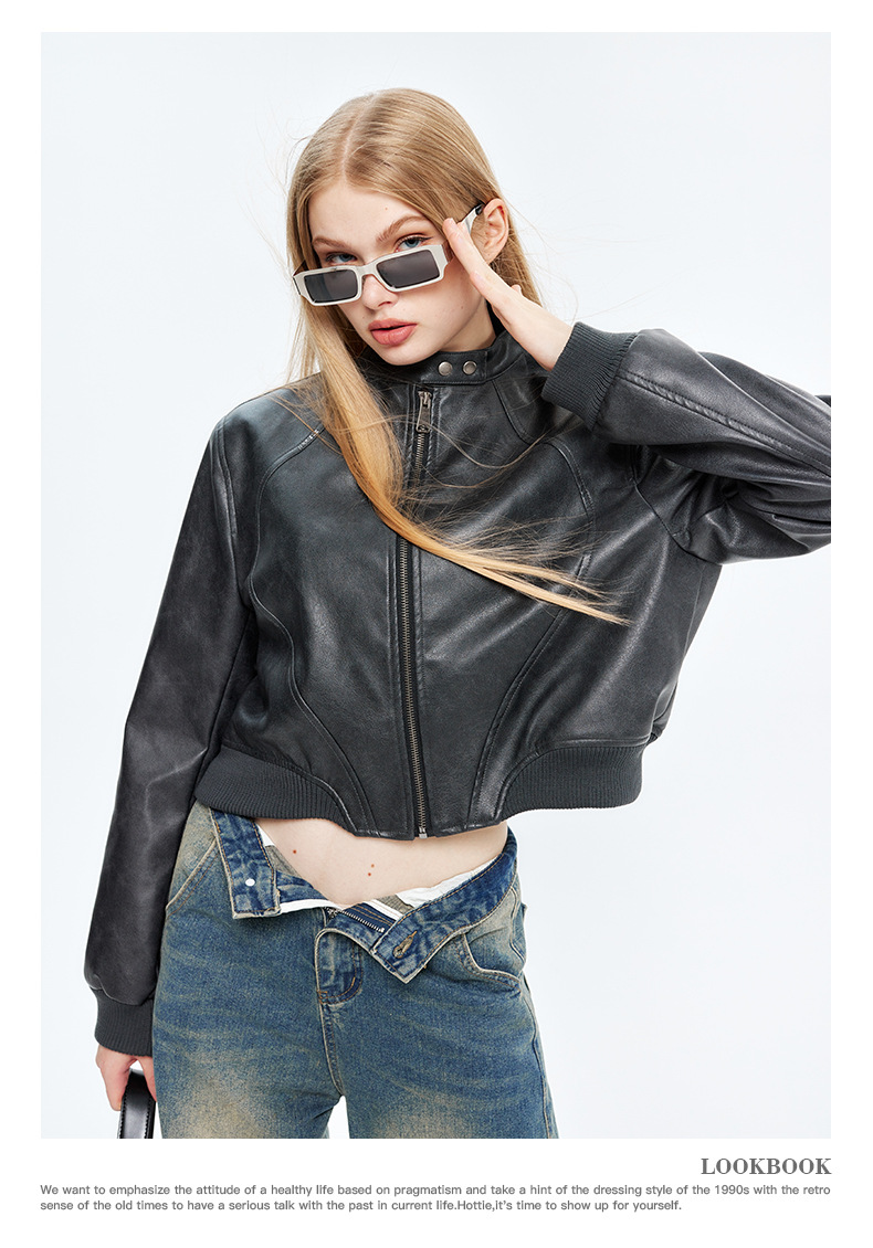 HeyHenry 아메리칸 패션 스탠드 칼라 긴 소매 짧은 PU 가죽 짧은 코트 재킷 야구 유니폼 지퍼 탑 여성스토어 가기