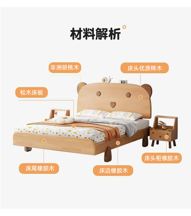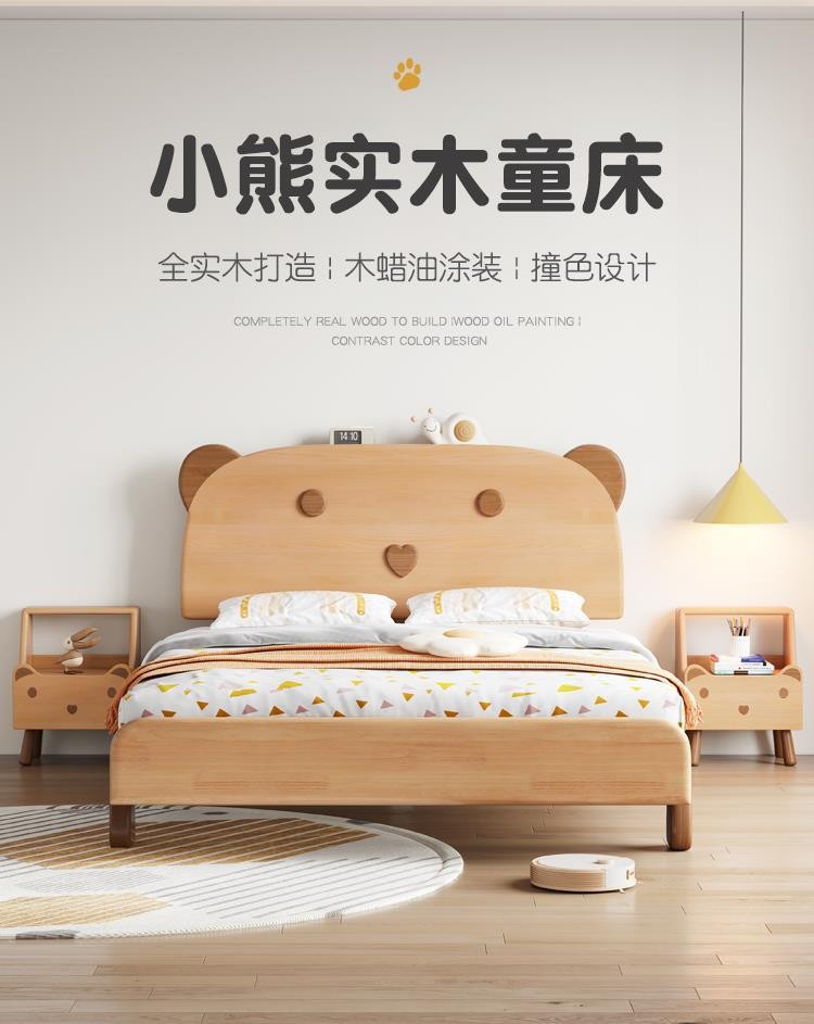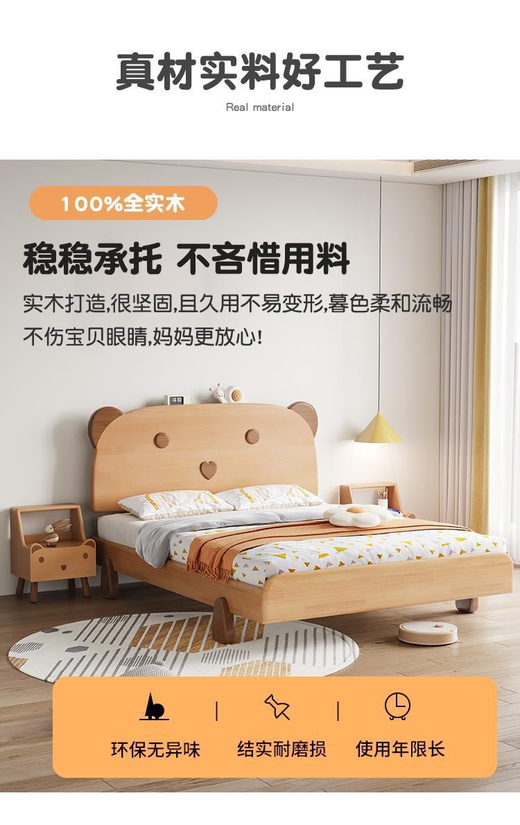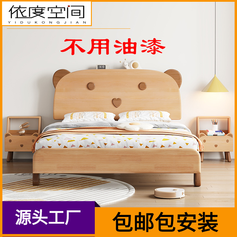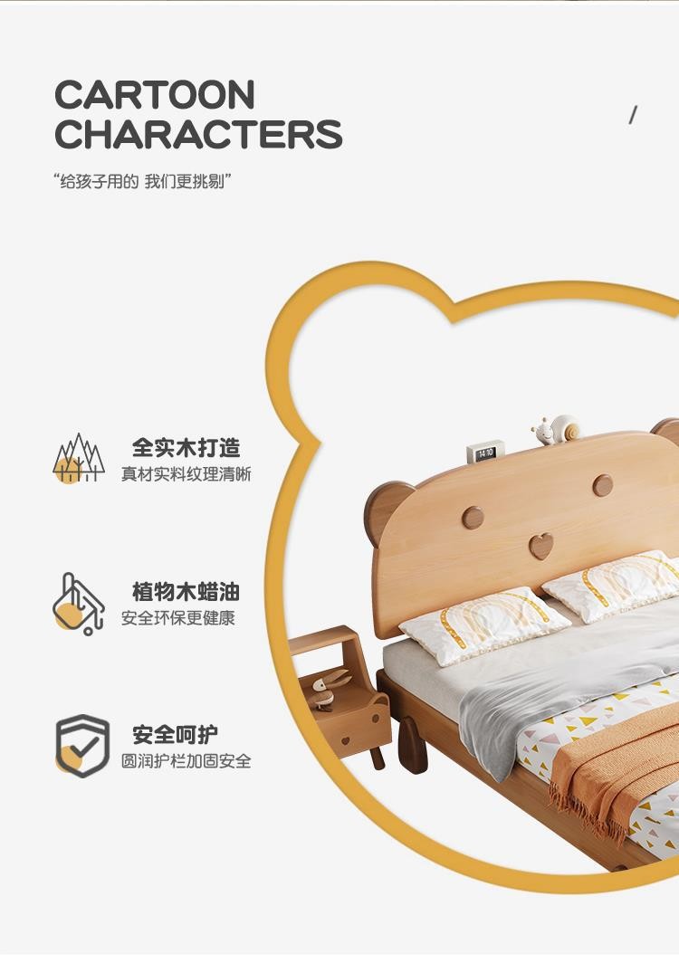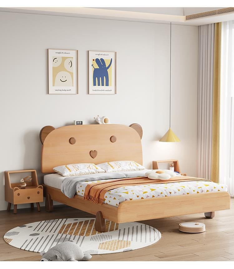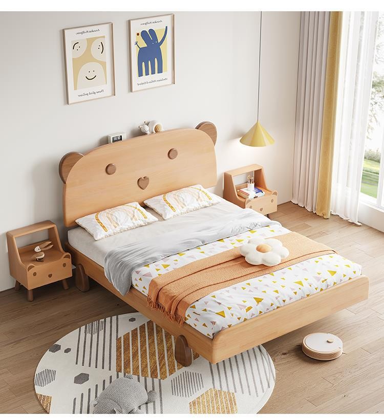 모든 단단한 나무 어린이 침대 소년과 소녀 곰 만화 너도밤 나무 싱글 침대 1.0 m 아기 관리 유치원 침대