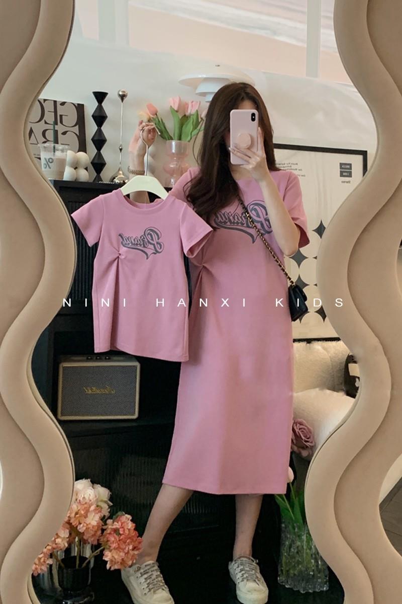 면 여름 2023 새로운 아이들의 부모 원피스 아기 소녀 귀여운 원피스 모든 매치 패션 인쇄 어머니와 드레스스토어 가기