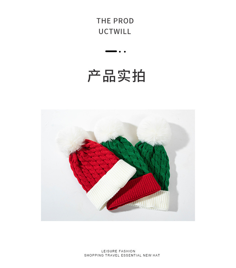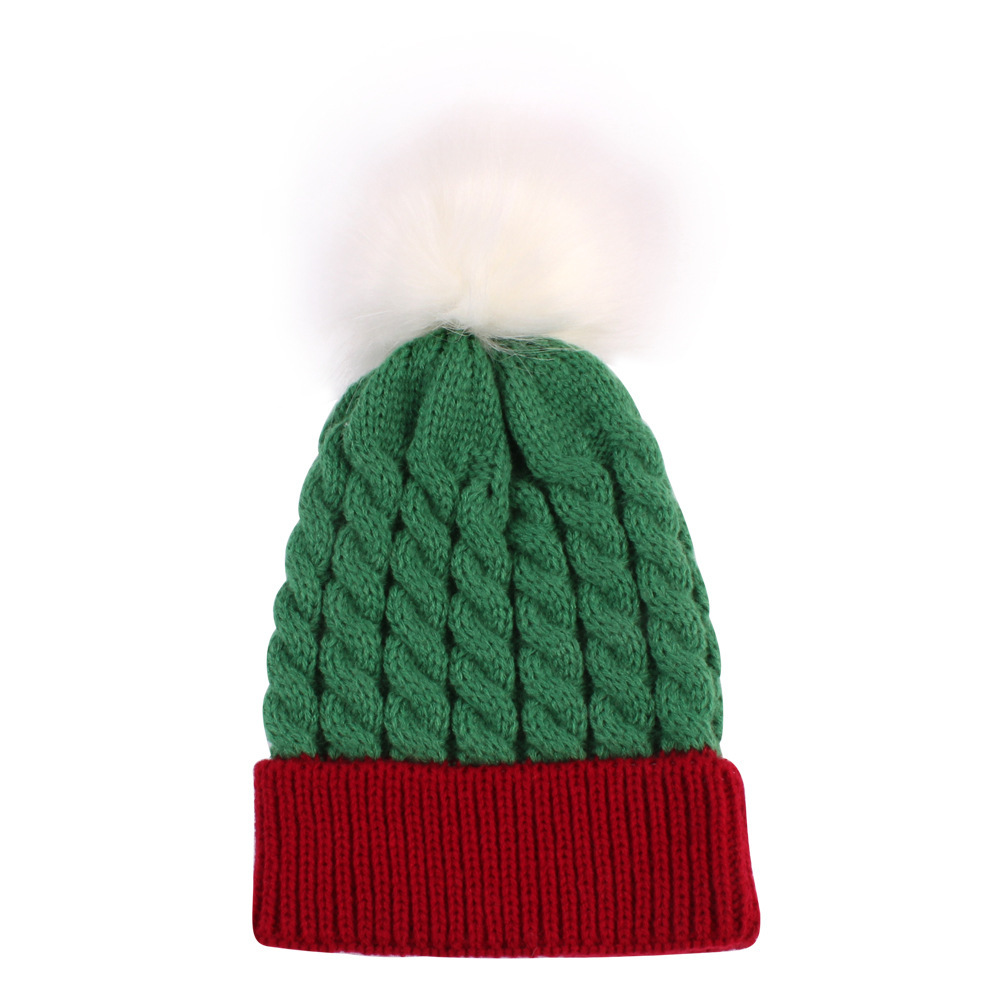 크로스 국경 크리스마스 유럽과 미국 어린이 봉제 볼 모자 크리스마스 선물 버건디 따뜻한 니트 모자 양모 모자